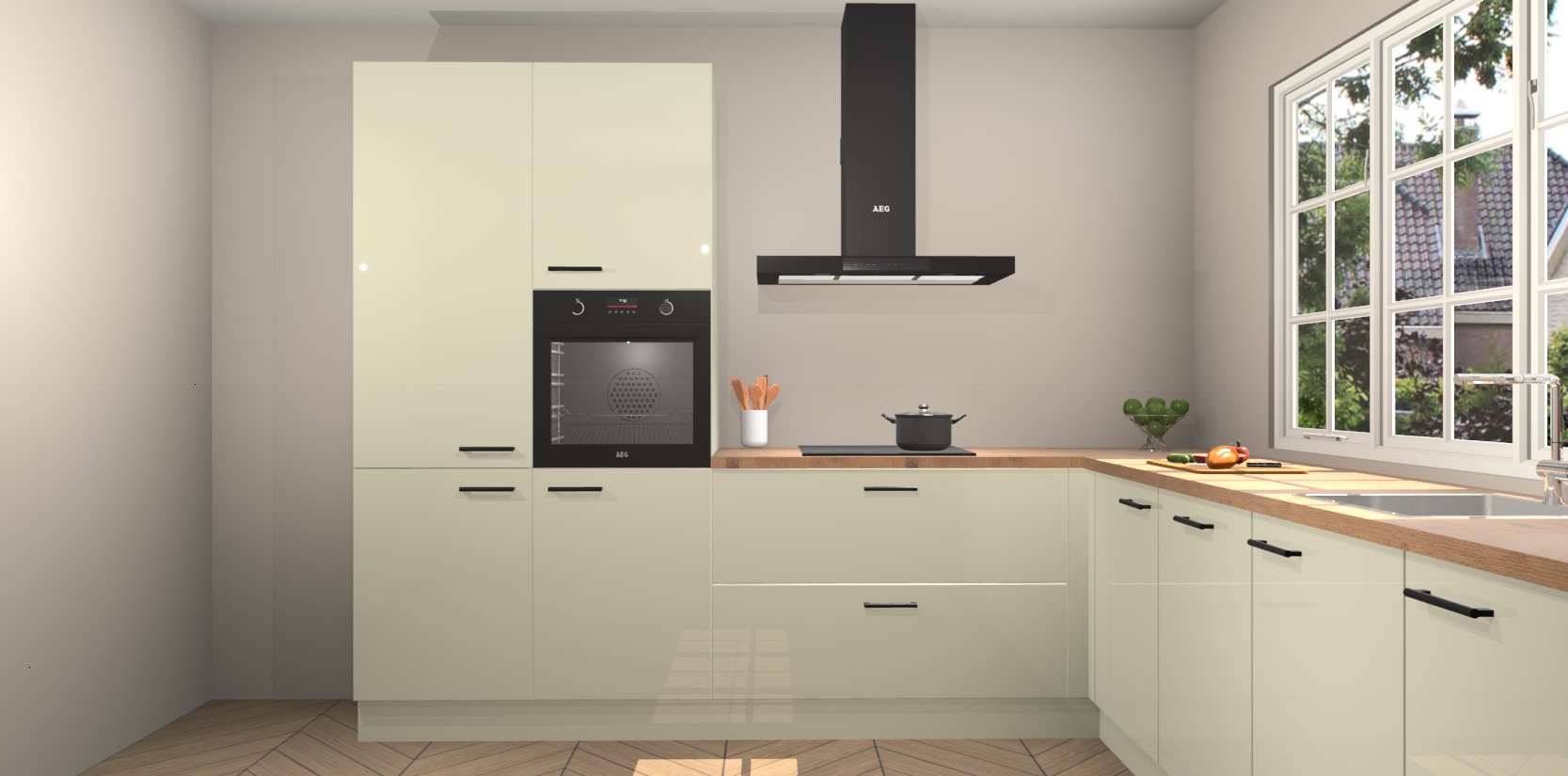 De keuken heeft veel opbergruimte, waardoor u alle ingrediënten gemakkelijk bereikbaar hebt staan. En daarnaast bevat deze volledig uitgeruste keuken ook 5 ingebouwde apparaten: een oven, inductiekookplaat, afzuigkap, vaatwasser en koelkast. Deze zijn heel eenvoudig na bestellen te upgraden naar AEG als u dit wilt. Bovendien zijn de softclose-kastdeuren ideaal; geef ze gewoon even een tikje en ze sluiten automatisch met geruisloze precisie.