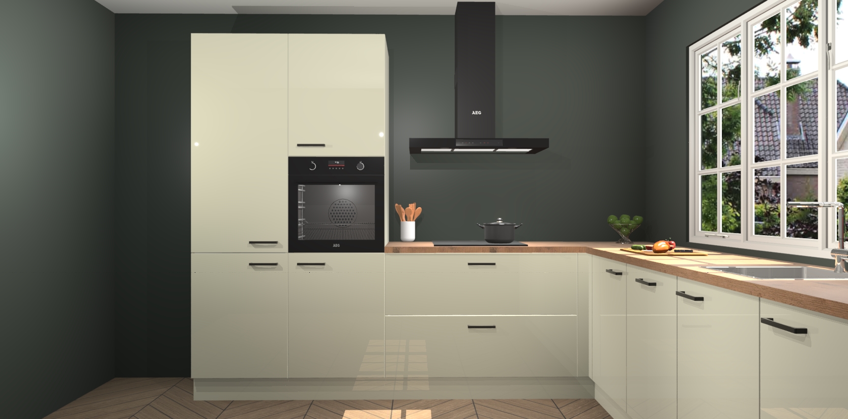De keuken heeft veel opbergruimte, waardoor u alle ingrediënten gemakkelijk bereikbaar hebt staan. En daarnaast bevat deze volledig uitgeruste keuken ook 5 ingebouwde apparaten: een oven, inductiekookplaat, afzuigkap, vaatwasser en koelkast. Deze zijn heel eenvoudig na bestellen te upgraden naar AEG als u dit wilt. Bovendien zijn de softclose-kastdeuren ideaal; geef ze gewoon even een tikje en ze sluiten automatisch met geruisloze precisie.