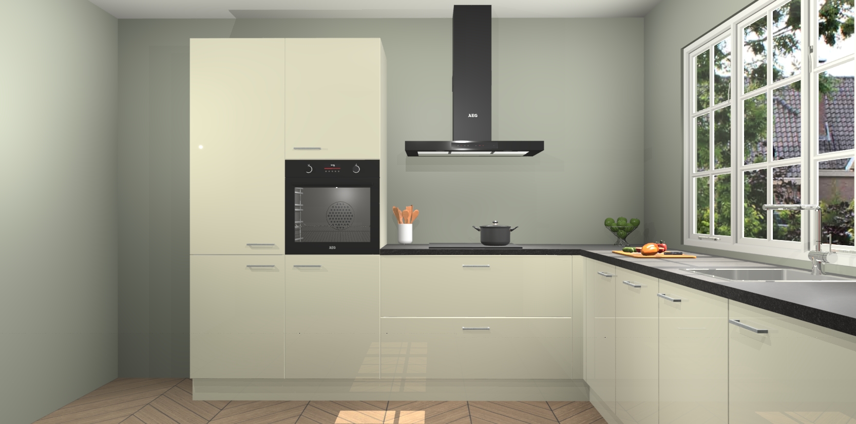 De keuken heeft veel opbergruimte, waardoor u alle ingrediënten gemakkelijk bereikbaar hebt staan. En daarnaast bevat deze volledig uitgeruste keuken ook 5 ingebouwde apparaten: een oven, inductiekookplaat, afzuigkap, vaatwasser en koelkast. Deze zijn heel eenvoudig na bestellen te upgraden naar AEG als u dit wilt. Bovendien zijn de softclose-kastdeuren ideaal; geef ze gewoon even een tikje en ze sluiten automatisch met geruisloze precisie.