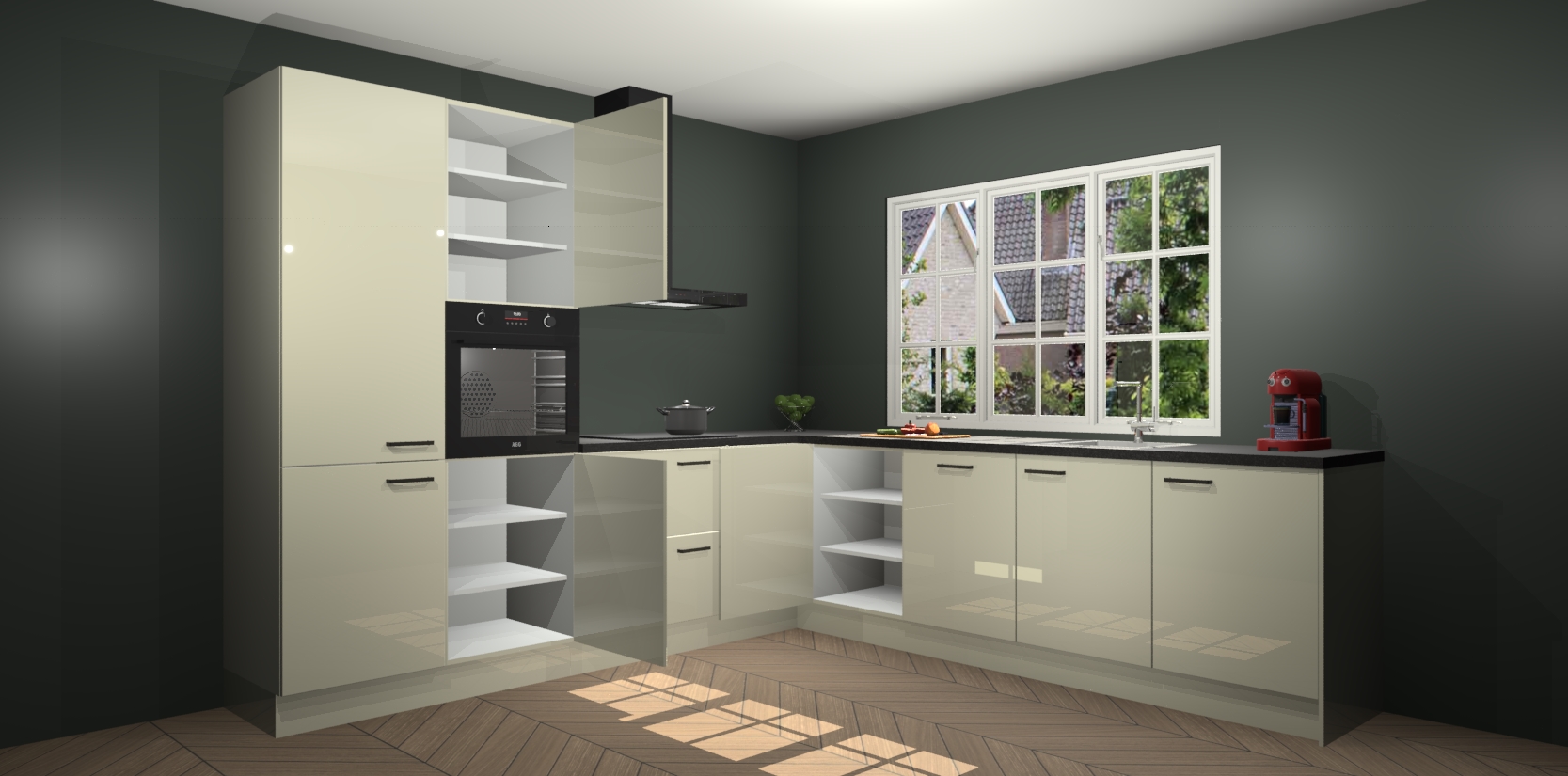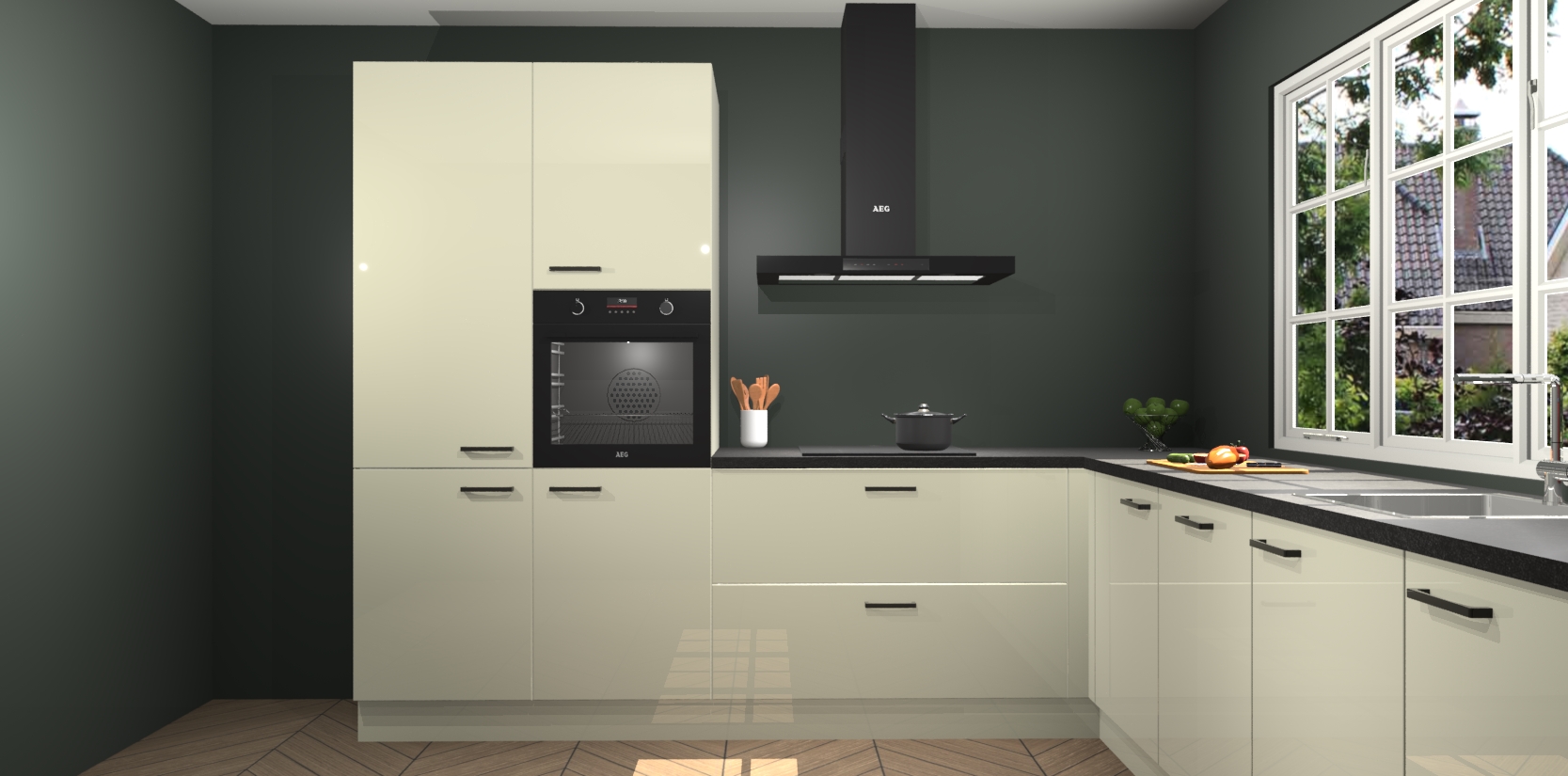 De keuken heeft veel opbergruimte, waardoor u alle ingrediënten gemakkelijk bereikbaar hebt staan. En daarnaast bevat deze volledig uitgeruste keuken ook 5 ingebouwde apparaten: een oven, inductiekookplaat, afzuigkap, vaatwasser en koelkast. Deze zijn heel eenvoudig na bestellen te upgraden naar AEG als u dit wilt. Bovendien zijn de softclose-kastdeuren ideaal; geef ze gewoon even een tikje en ze sluiten automatisch met geruisloze precisie.