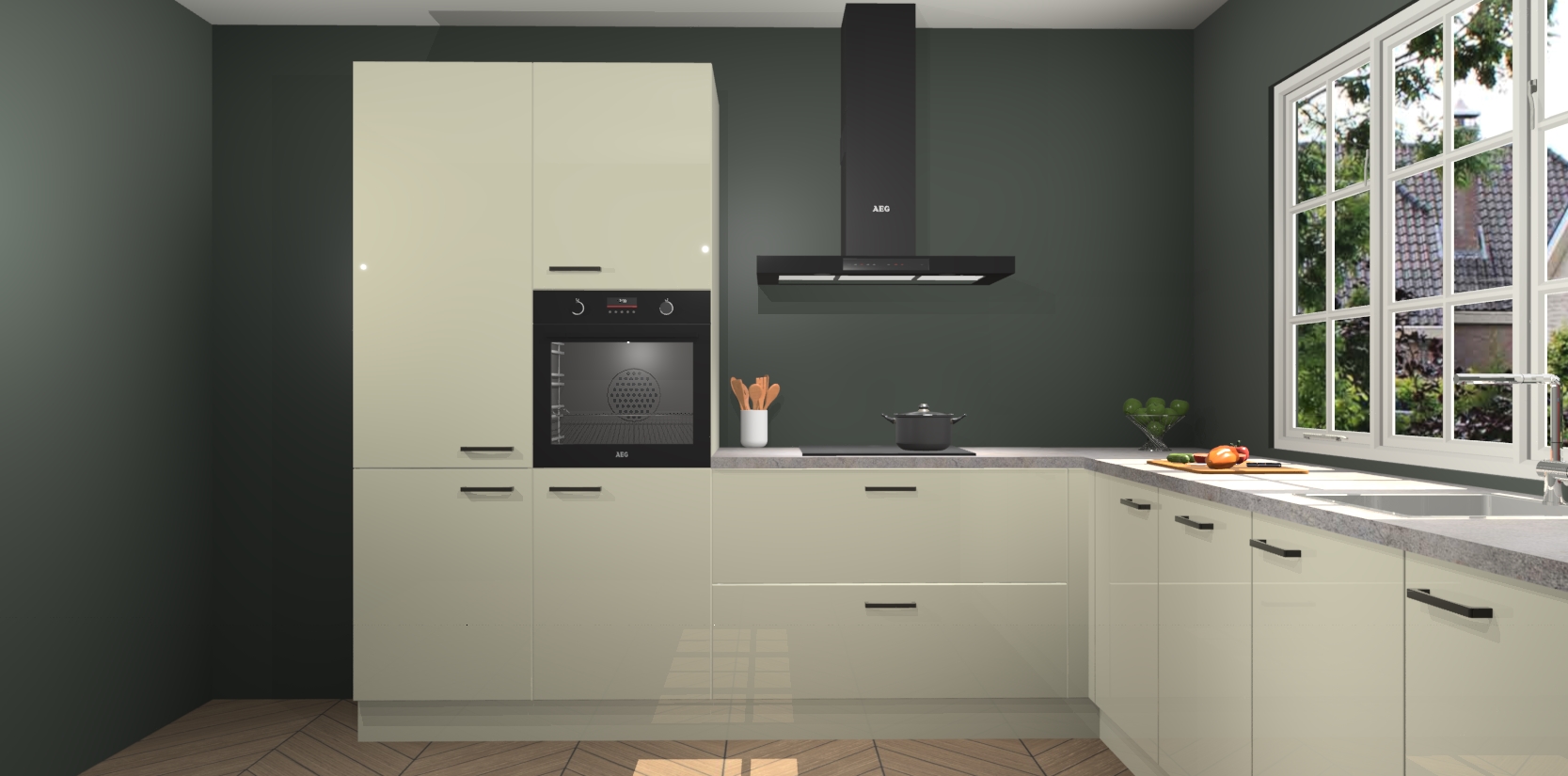 De keuken heeft veel opbergruimte, waardoor u alle ingrediënten gemakkelijk bereikbaar hebt staan. En daarnaast bevat deze volledig uitgeruste keuken ook 5 ingebouwde apparaten: een oven, inductiekookplaat, afzuigkap, vaatwasser en koelkast. Deze zijn heel eenvoudig na bestellen te upgraden naar AEG als u dit wilt. Bovendien zijn de softclose-kastdeuren ideaal; geef ze gewoon even een tikje en ze sluiten automatisch met geruisloze precisie.