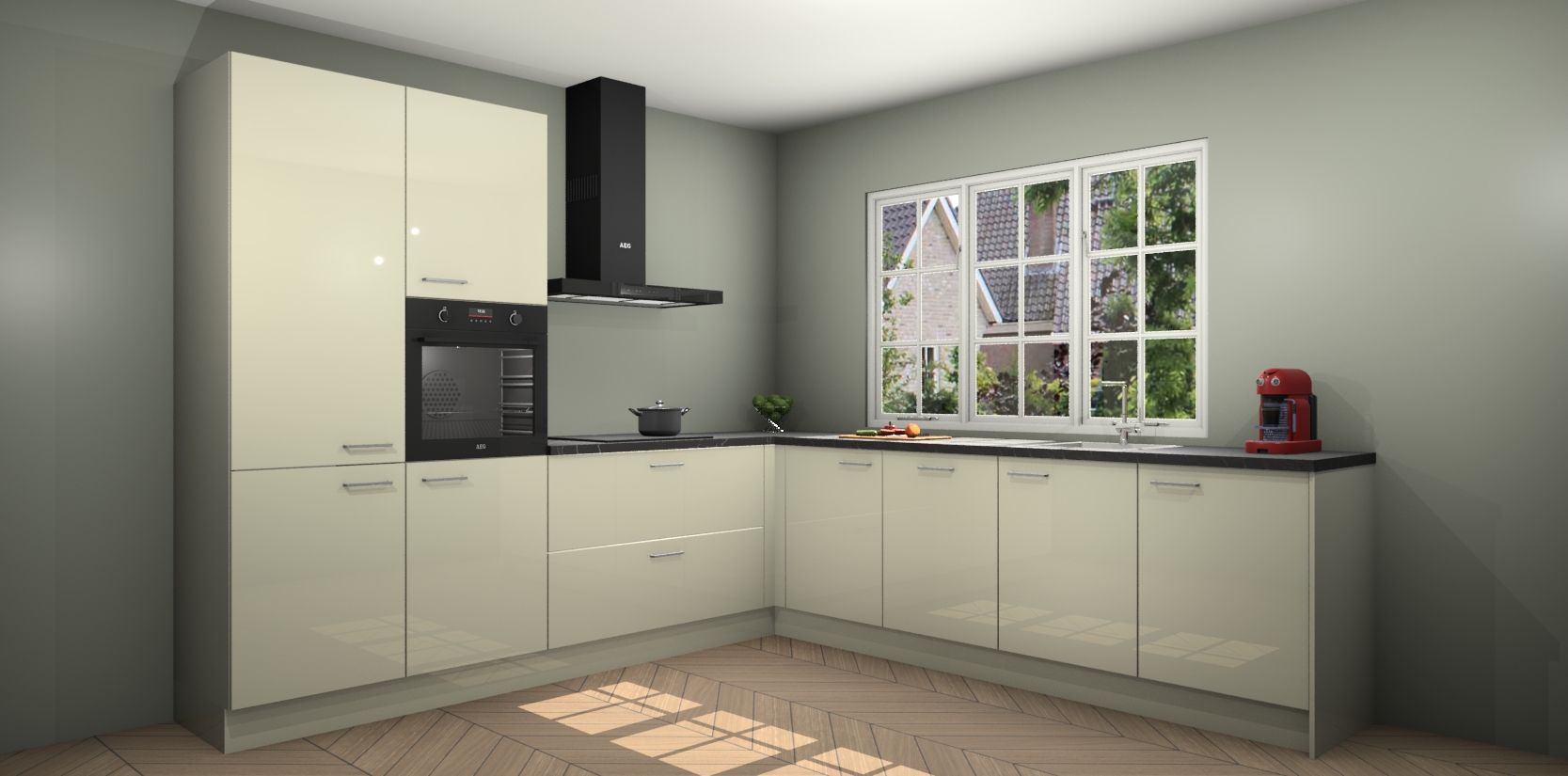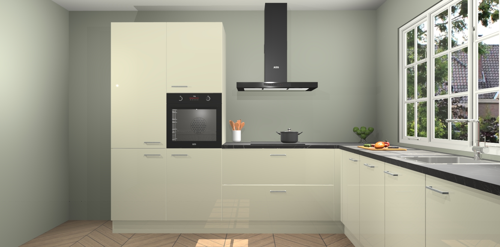 De keuken heeft veel opbergruimte, waardoor u alle ingrediënten gemakkelijk bereikbaar hebt staan. En daarnaast bevat deze volledig uitgeruste keuken ook 5 ingebouwde apparaten: een oven, inductiekookplaat, afzuigkap, vaatwasser en koelkast. Deze zijn heel eenvoudig na bestellen te upgraden naar AEG als u dit wilt. Bovendien zijn de softclose-kastdeuren ideaal; geef ze gewoon even een tikje en ze sluiten automatisch met geruisloze precisie.