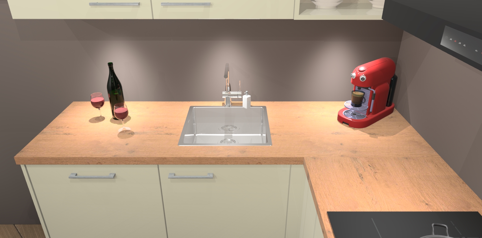 - Bij een hoekwerkblad zijn de hoeken in gevreesd en op maat gemaakt