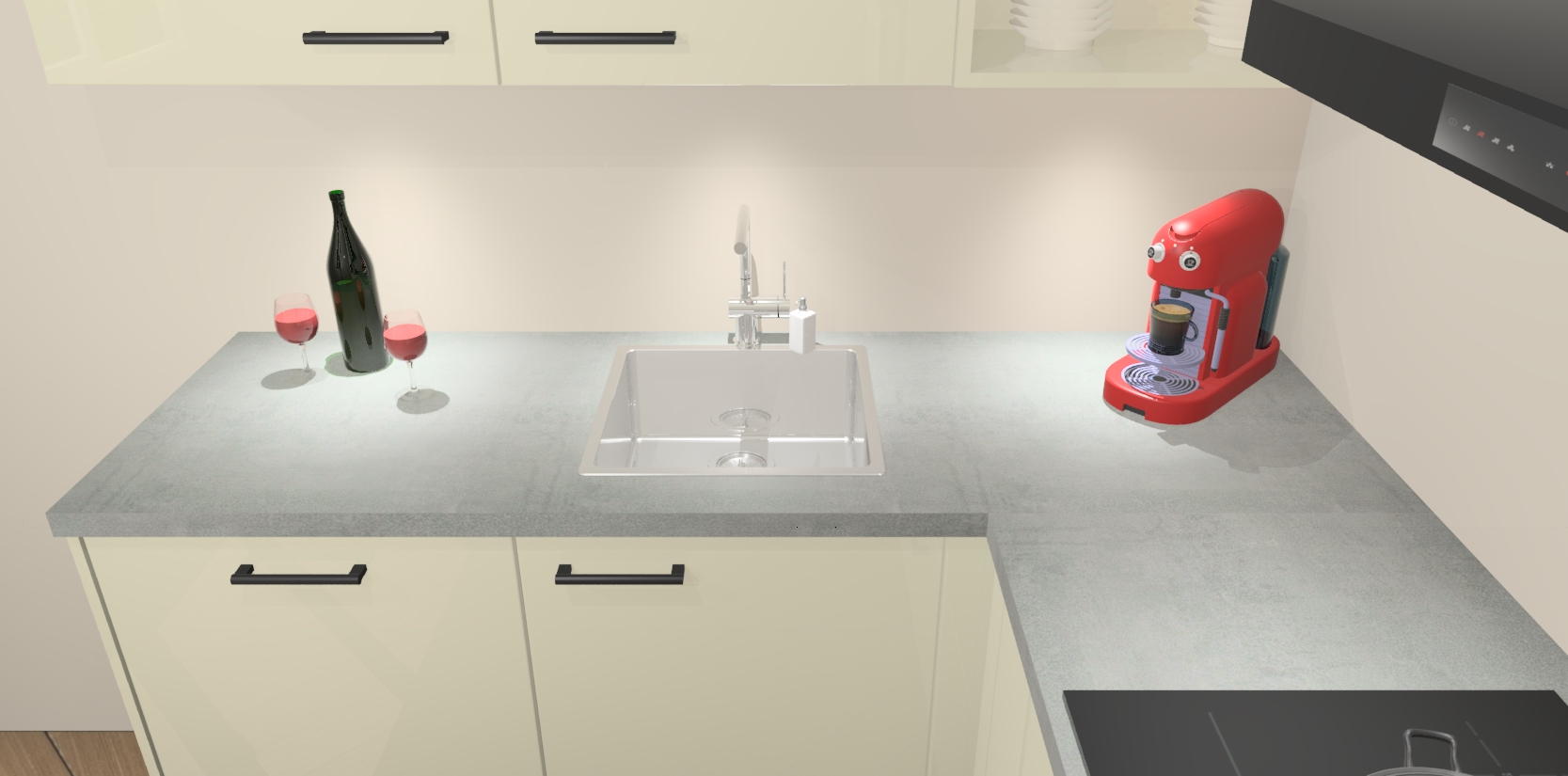 - Bij een hoekwerkblad zijn de hoeken in gevreesd en op maat gemaakt
