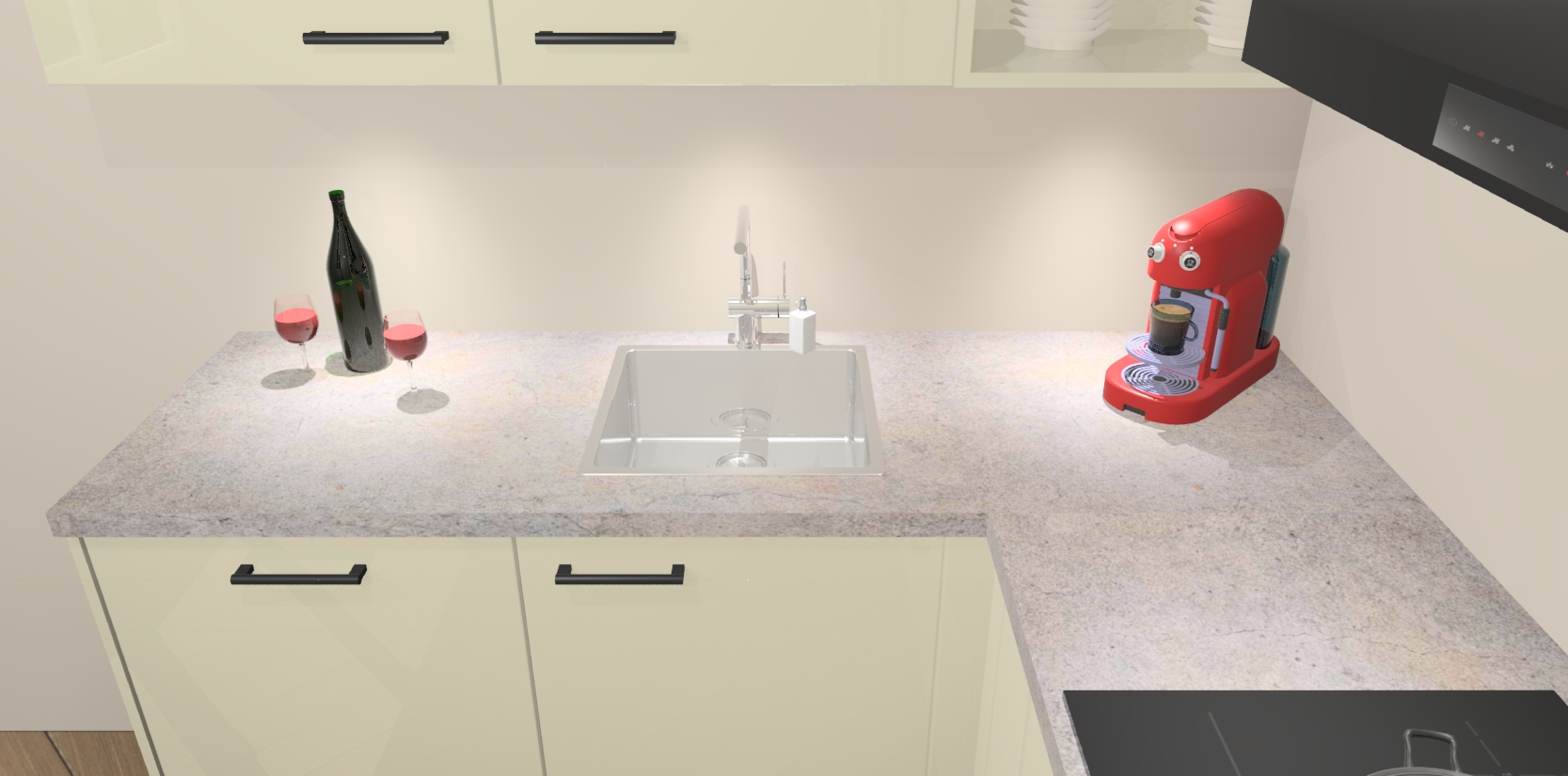 - Bij een hoekwerkblad zijn de hoeken in gevreesd en op maat gemaakt