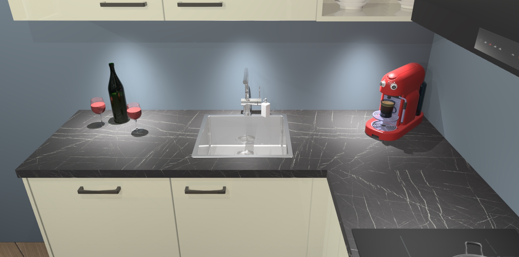 - Bij een hoekwerkblad zijn de hoeken in gevreesd en op maat gemaakt