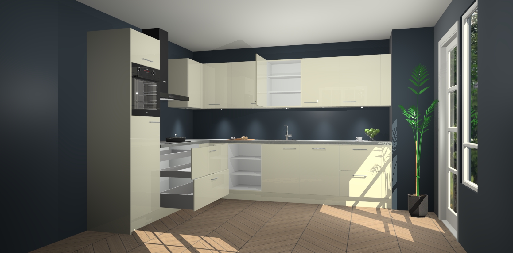 De Magnolia hoogglans keuken Debar is uitgerust met vijf inbouwapparaten die elke kooktaak handig en efficiënt maken. Een oven, inductiekookplaat, afzuigkap, vaatwasser en koelkast zijn standaard, maar kunnen na bestelling eenvoudig worden geupgrade naar AEG. Profiteer vervolgens van de softclose deuren voor snelle toegang en geruisloze toegang.