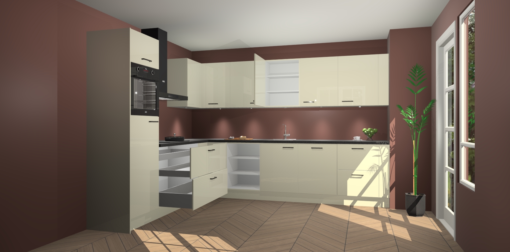 De Magnolia hoogglans keuken Debar is uitgerust met vijf inbouwapparaten die elke kooktaak handig en efficiënt maken. Een oven, inductiekookplaat, afzuigkap, vaatwasser en koelkast zijn standaard, maar kunnen na bestelling eenvoudig worden geupgrade naar AEG. Profiteer vervolgens van de softclose deuren voor snelle toegang en geruisloze toegang.