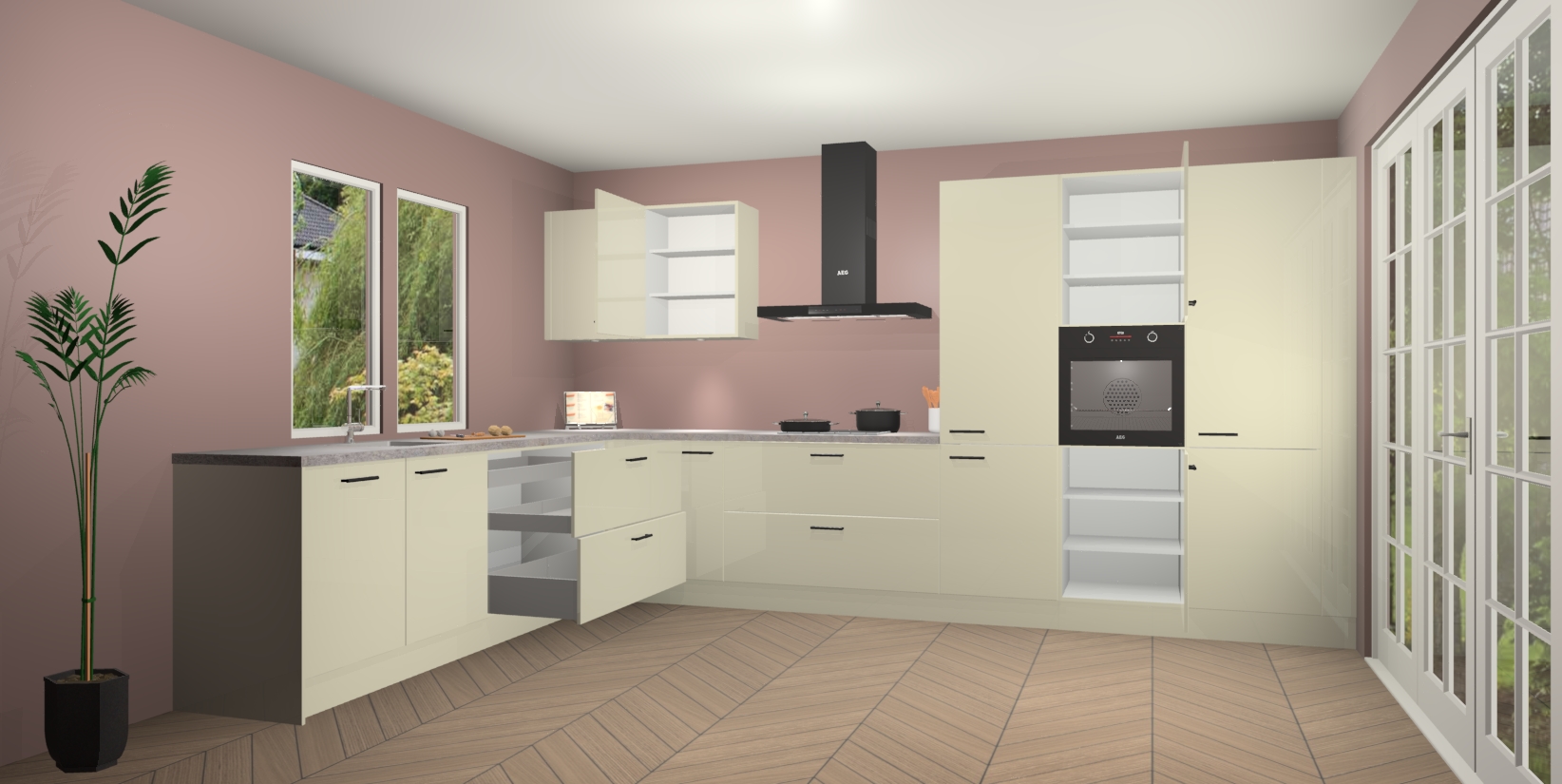 Inclusief plinten, stelpoten en werkblad