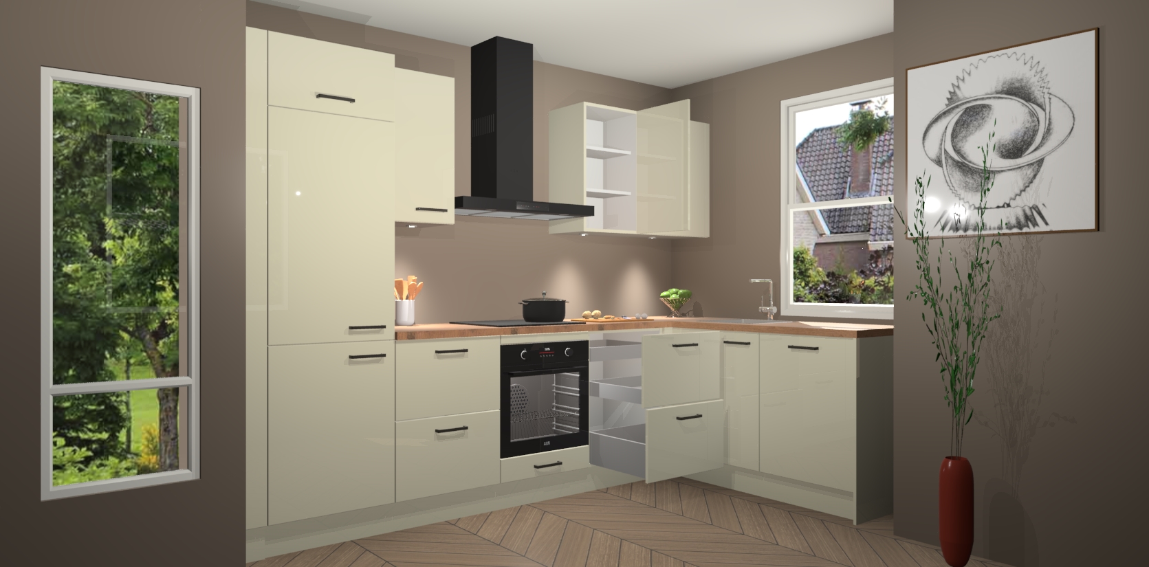 De Magnolia hoogglans keuken Geneve is uitgerust met 5 inbouwapparaten - een oven, inductiekookplaat, afzuigkap, vaatwasser en koelkast - voor al uw kook- en bewaarbehoeftes. U kunt deze apparaten desgewenst eenvoudig upgraden naar AEG of de oven omruilen voor een combimagnetron na het plaatsen van uw bestelling. En met de soft close deuren, voldoende opbergruimte en kasten die voorgemonteerd worden geleverd, bent u in een mum van tijd klaar om heerlijke maaltijden te bereiden!