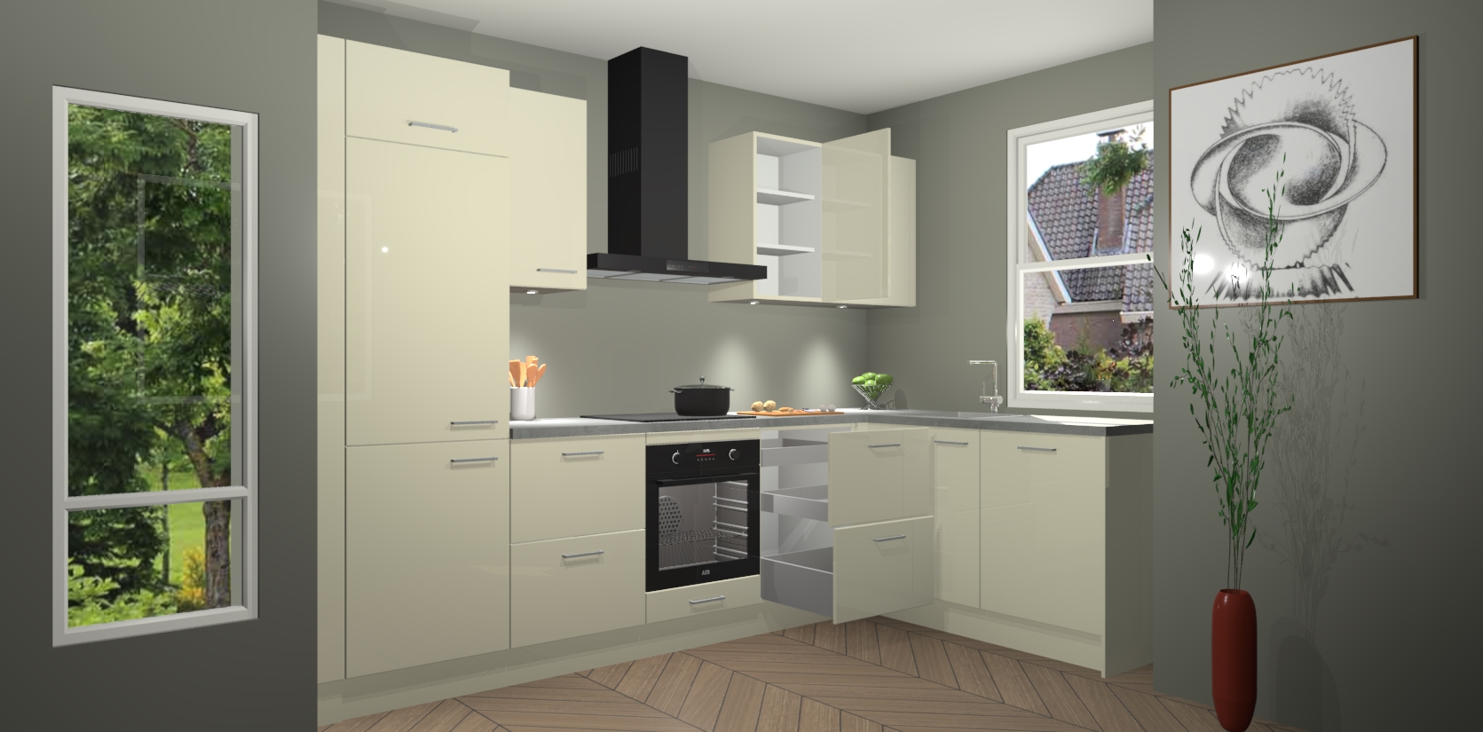 Bent u op zoek naar een moderne en tijdloze keuken die schoonheid in uw huis brengt? Zoek dan niet verder dan de Magnolia hoogglans keuken Geneve - de perfecte keuken voor al uw wensen. Deze hoekkeuken biedt de hoogste Duitse kwaliteit voor een vaste lage prijs en is zeker een blikvanger in uw huis!