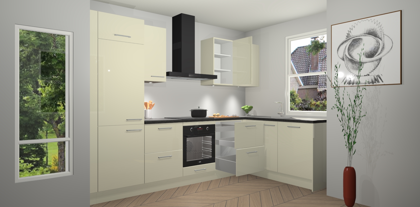 Bent u op zoek naar een moderne en tijdloze keuken die schoonheid in uw huis brengt? Zoek dan niet verder dan de Magnolia hoogglans keuken Geneve - de perfecte keuken voor al uw wensen. Deze hoekkeuken biedt de hoogste Duitse kwaliteit voor een vaste lage prijs en is zeker een blikvanger in uw huis!