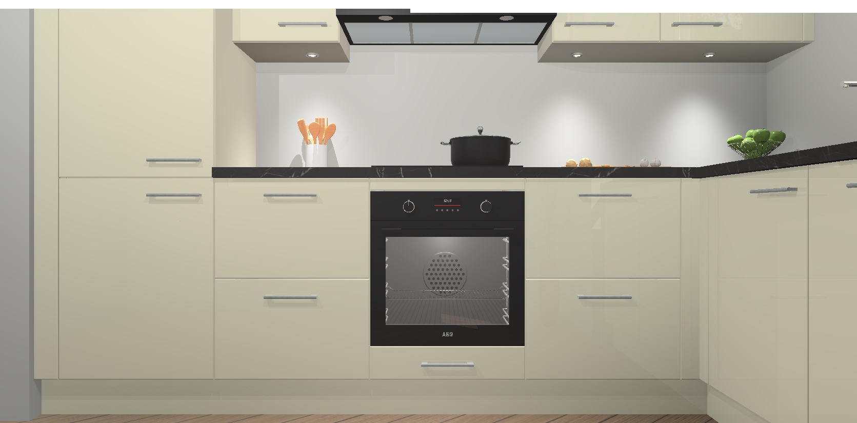De Magnolia hoogglans keuken Geneve is uitgerust met 5 inbouwapparaten - een oven, inductiekookplaat, afzuigkap, vaatwasser en koelkast - voor al uw kook- en bewaarbehoeftes. U kunt deze apparaten desgewenst eenvoudig upgraden naar AEG of de oven omruilen voor een combimagnetron na het plaatsen van uw bestelling. En met de soft close deuren, voldoende opbergruimte en kasten die voorgemonteerd worden geleverd, bent u in een mum van tijd klaar om heerlijke maaltijden te bereiden!