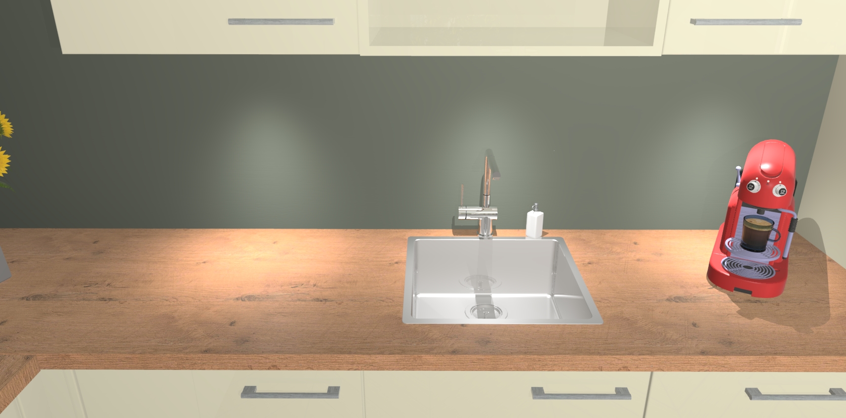 - De spoelbak is nog niet in gevreesd. Dit dient tijdens het werk gedaan te worden