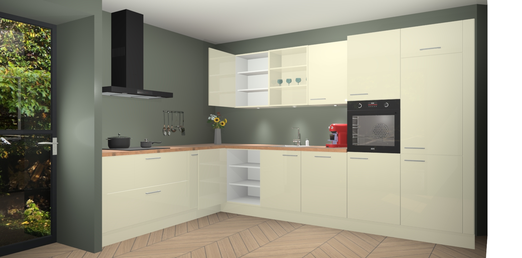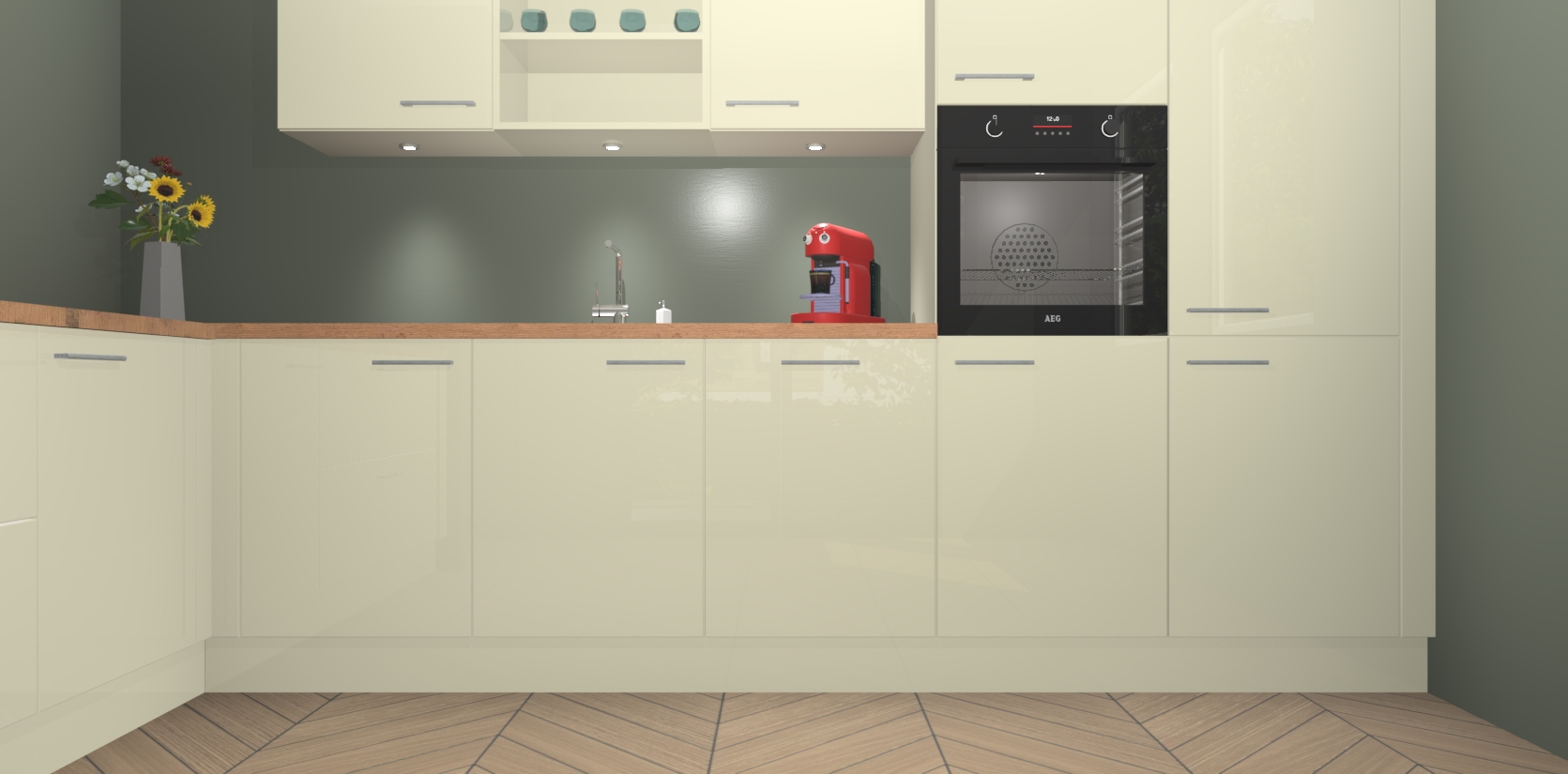 De Magnolia hoogglans keuken Gotenburg is zo ontworpen dat u alle mogelijke vormen van opslagruimte kunt genieten. Bovendien heeft u meteen toegang tot vijf ingebouwde apparaten: een oven, inductiekookplaat, afzuigkap, vaatwasser en koelkast. Gewoon upgraden naar AEG na bestelling? Dit kan heel gemakkelijk worden geregeld. De deuren sluiten zacht dankzij zachtsluitende scharnieren en ze houden warmte vast terwijl ze uitzonderlijk stil blijven wanneer ze worden geopend of gesloten.