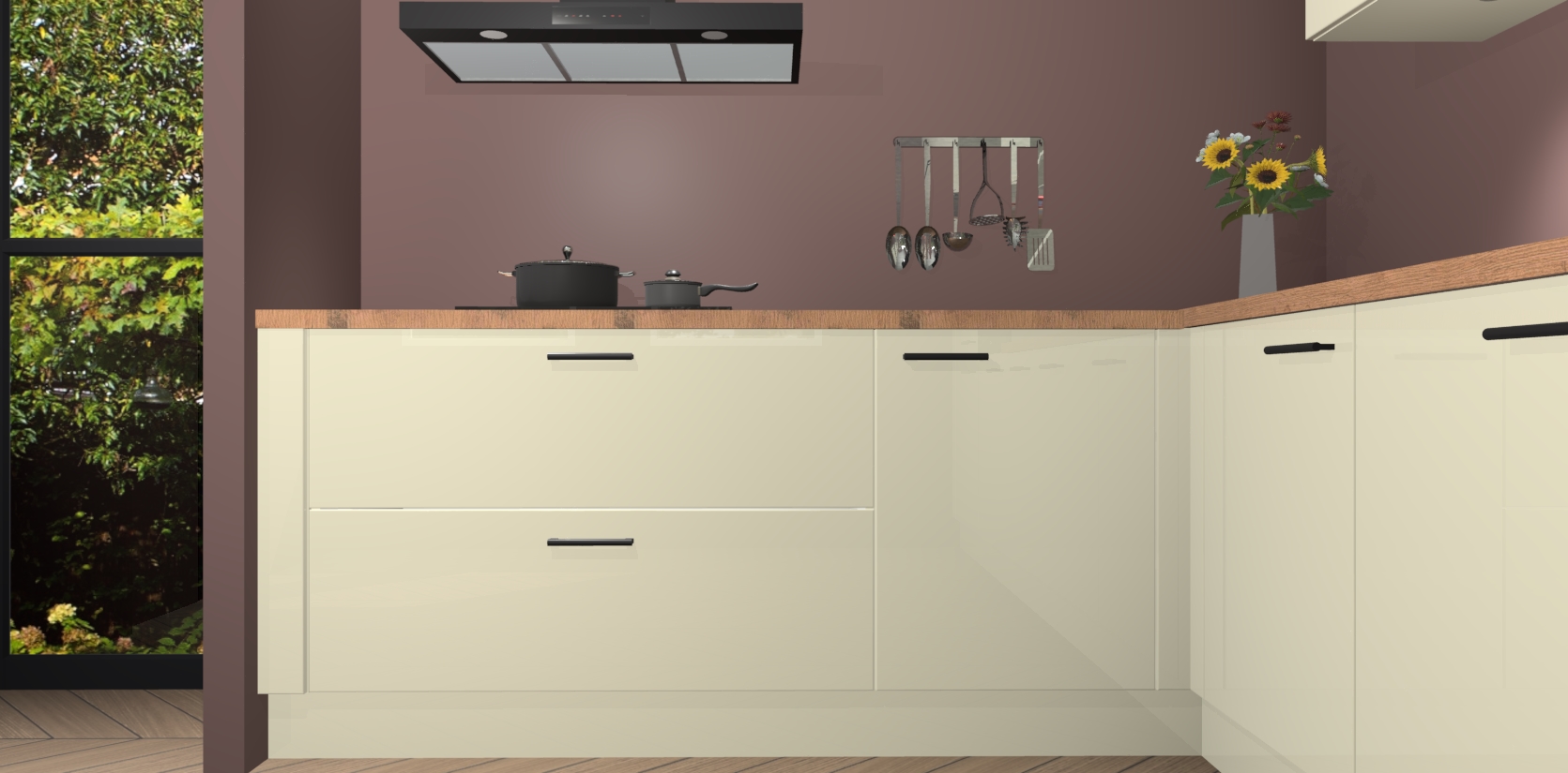 Inclusief plinten, stelpoten en werkblad