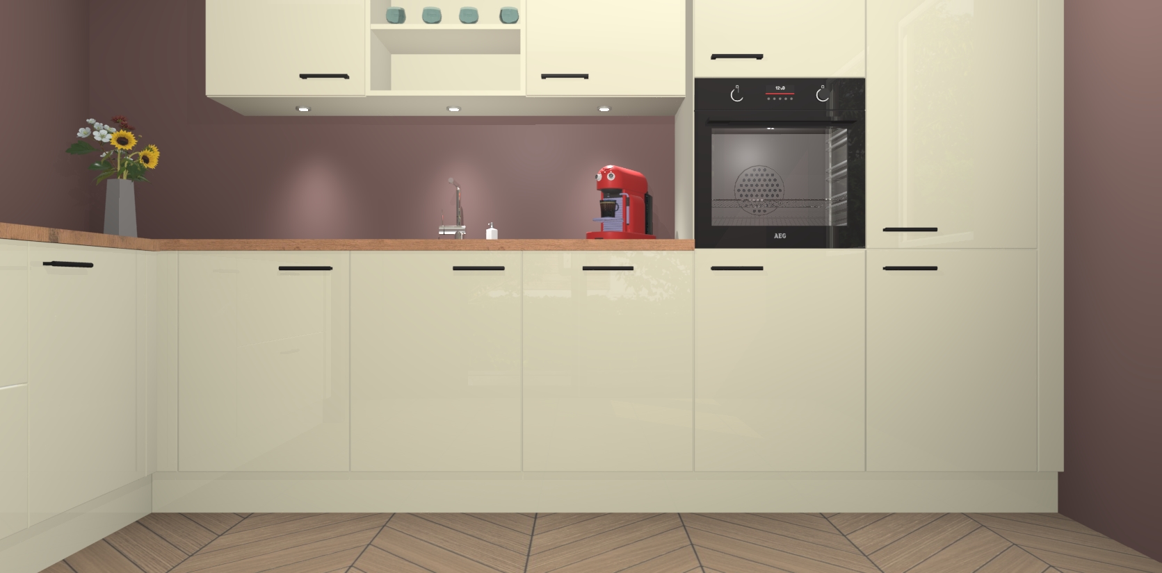 De Magnolia hoogglans keuken Gotenburg is zo ontworpen dat u alle mogelijke vormen van opslagruimte kunt genieten. Bovendien heeft u meteen toegang tot vijf ingebouwde apparaten: een oven, inductiekookplaat, afzuigkap, vaatwasser en koelkast. Gewoon upgraden naar AEG na bestelling? Dit kan heel gemakkelijk worden geregeld. De deuren sluiten zacht dankzij zachtsluitende scharnieren en ze houden warmte vast terwijl ze uitzonderlijk stil blijven wanneer ze worden geopend of gesloten.