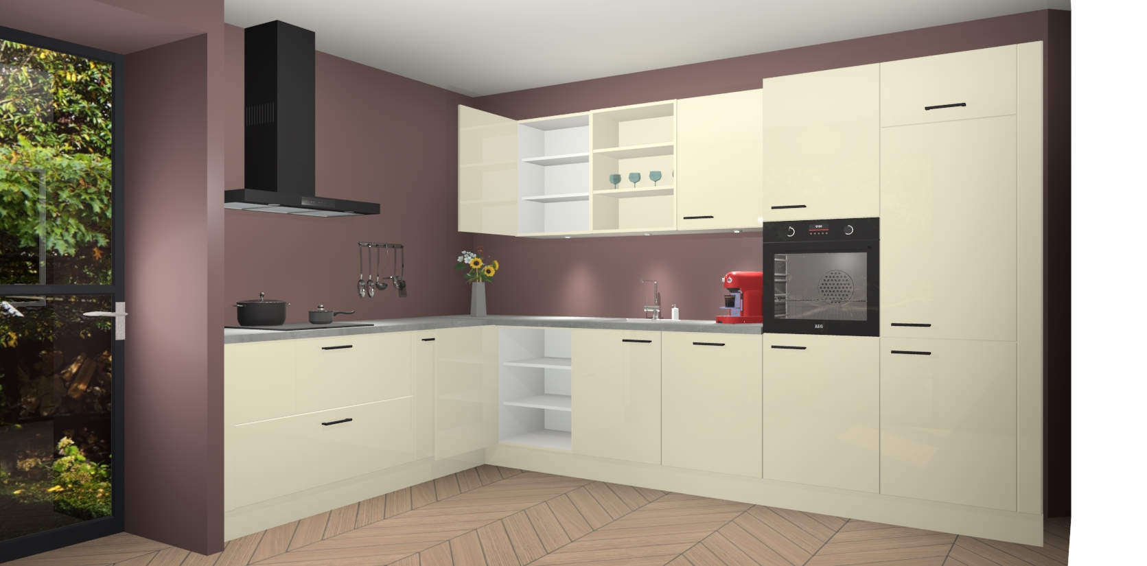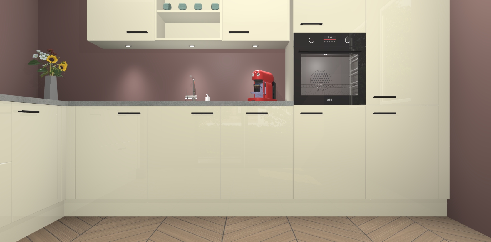 De Magnolia hoogglans keuken Gotenburg is zo ontworpen dat u alle mogelijke vormen van opslagruimte kunt genieten. Bovendien heeft u meteen toegang tot vijf ingebouwde apparaten: een oven, inductiekookplaat, afzuigkap, vaatwasser en koelkast. Gewoon upgraden naar AEG na bestelling? Dit kan heel gemakkelijk worden geregeld. De deuren sluiten zacht dankzij zachtsluitende scharnieren en ze houden warmte vast terwijl ze uitzonderlijk stil blijven wanneer ze worden geopend of gesloten.