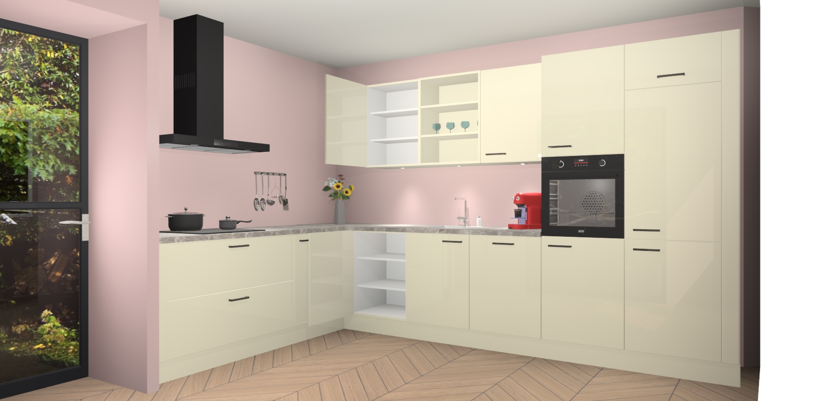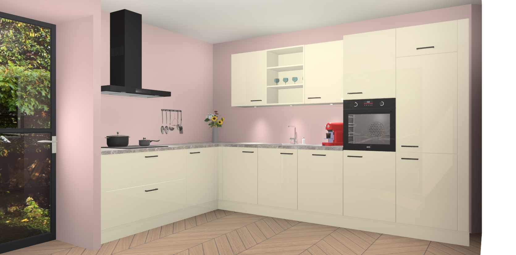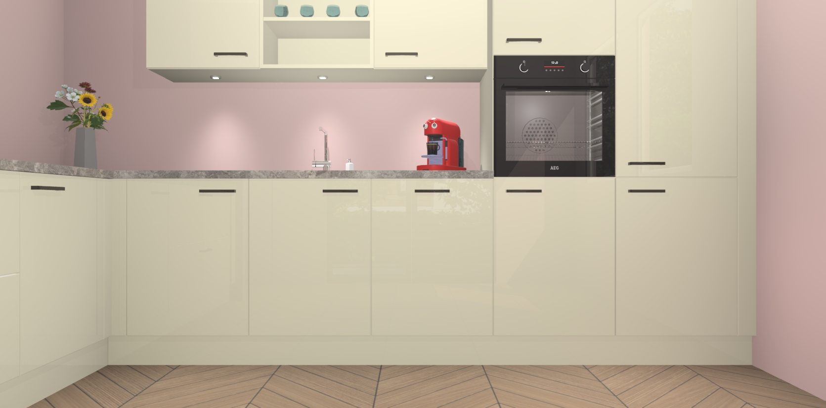 De Magnolia hoogglans keuken Gotenburg is zo ontworpen dat u alle mogelijke vormen van opslagruimte kunt genieten. Bovendien heeft u meteen toegang tot vijf ingebouwde apparaten: een oven, inductiekookplaat, afzuigkap, vaatwasser en koelkast. Gewoon upgraden naar AEG na bestelling? Dit kan heel gemakkelijk worden geregeld. De deuren sluiten zacht dankzij zachtsluitende scharnieren en ze houden warmte vast terwijl ze uitzonderlijk stil blijven wanneer ze worden geopend of gesloten.