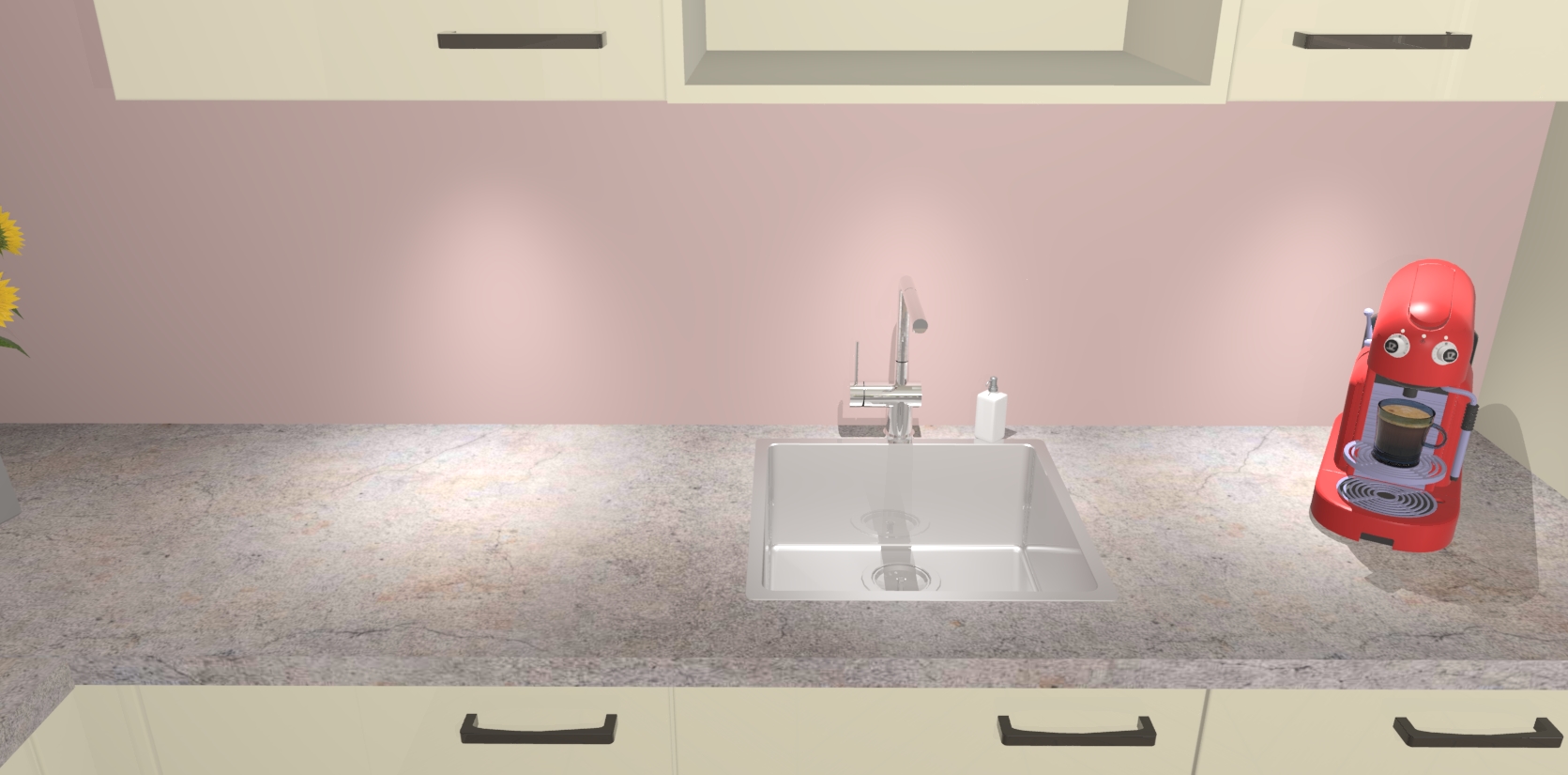 - De spoelbak is nog niet in gevreesd. Dit dient tijdens het werk gedaan te worden