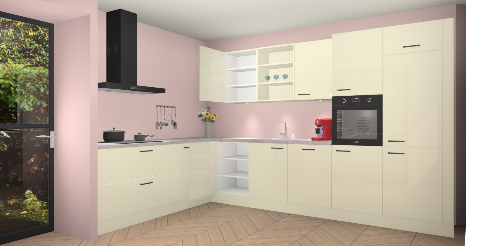 De Magnolia hoogglans keuken Gotenburg is zo ontworpen dat u alle mogelijke vormen van opslagruimte kunt genieten. Bovendien heeft u meteen toegang tot vijf ingebouwde apparaten: een oven, inductiekookplaat, afzuigkap, vaatwasser en koelkast. Gewoon upgraden naar AEG na bestelling? Dit kan heel gemakkelijk worden geregeld. De deuren sluiten zacht dankzij zachtsluitende scharnieren en ze houden warmte vast terwijl ze uitzonderlijk stil blijven wanneer ze worden geopend of gesloten.