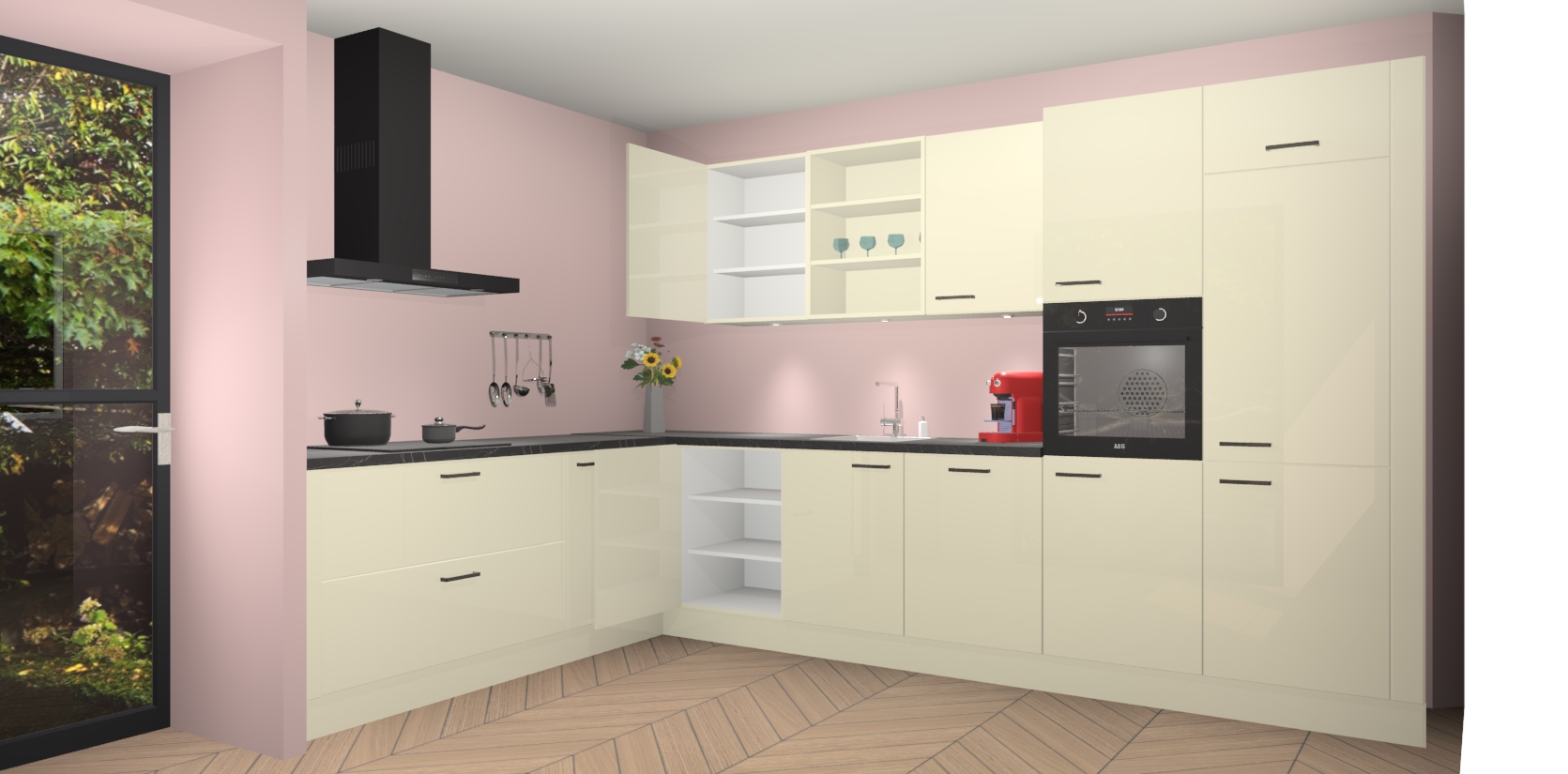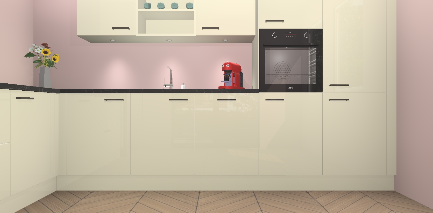 De Magnolia hoogglans keuken Gotenburg is zo ontworpen dat u alle mogelijke vormen van opslagruimte kunt genieten. Bovendien heeft u meteen toegang tot vijf ingebouwde apparaten: een oven, inductiekookplaat, afzuigkap, vaatwasser en koelkast. Gewoon upgraden naar AEG na bestelling? Dit kan heel gemakkelijk worden geregeld. De deuren sluiten zacht dankzij zachtsluitende scharnieren en ze houden warmte vast terwijl ze uitzonderlijk stil blijven wanneer ze worden geopend of gesloten.