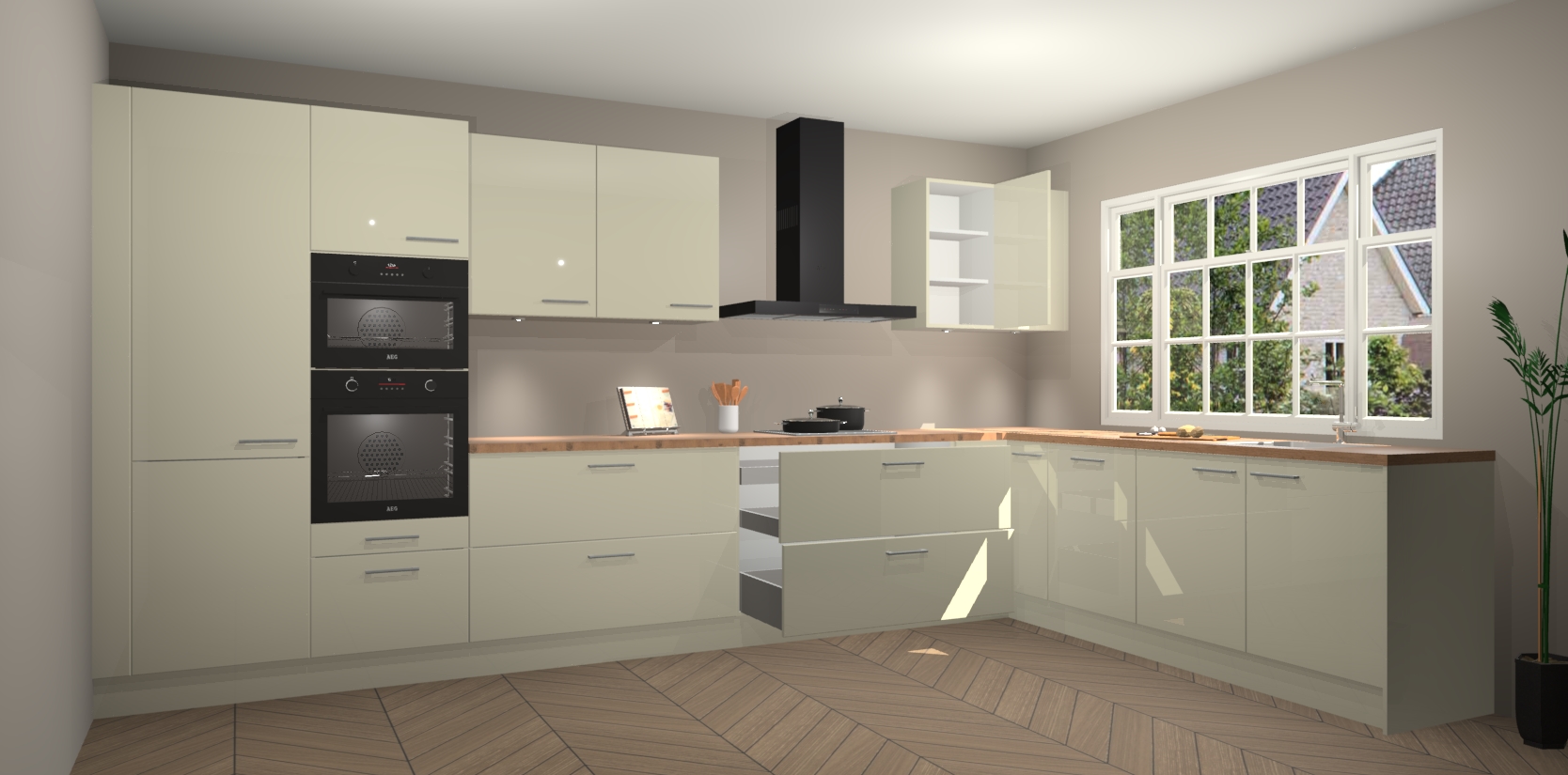 Kom dichtbij de perfecte keuken van uw dromen met de magnolia hoogglans keuken Graz. Met een prachtige houtlook en eigentijds ontwerp, straalt deze keuken warmte en sfeer uit. Of u nu liefhebber bent van traditionele of moderne stijlen, er is genoeg ruimte om aan al uw behoeften te voldoen.