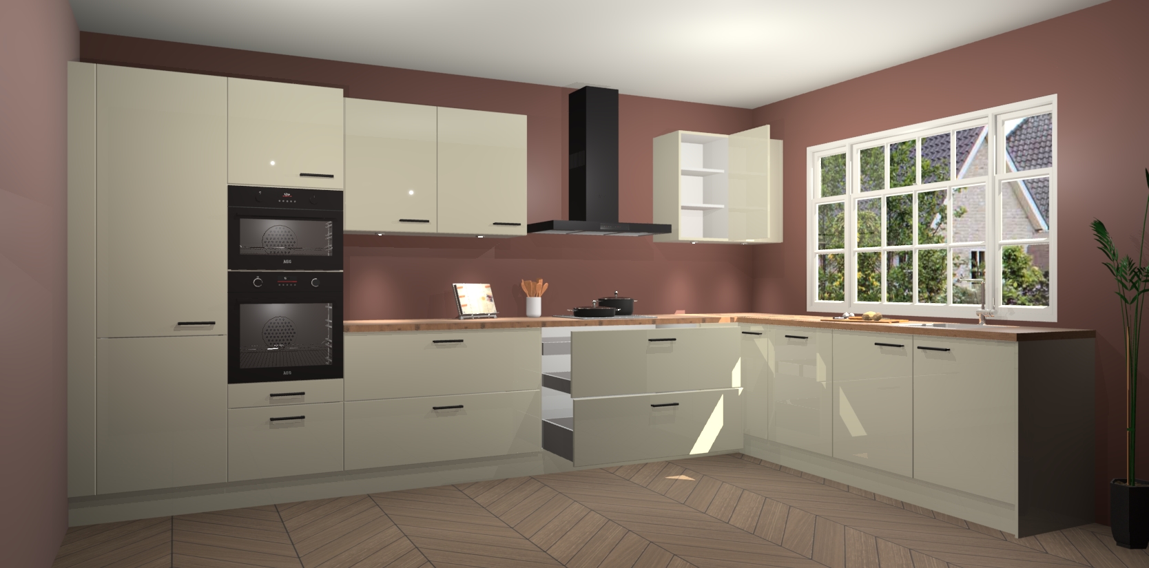 Kom dichtbij de perfecte keuken van uw dromen met de magnolia hoogglans keuken Graz. Met een prachtige houtlook en eigentijds ontwerp, straalt deze keuken warmte en sfeer uit. Of u nu liefhebber bent van traditionele of moderne stijlen, er is genoeg ruimte om aan al uw behoeften te voldoen.