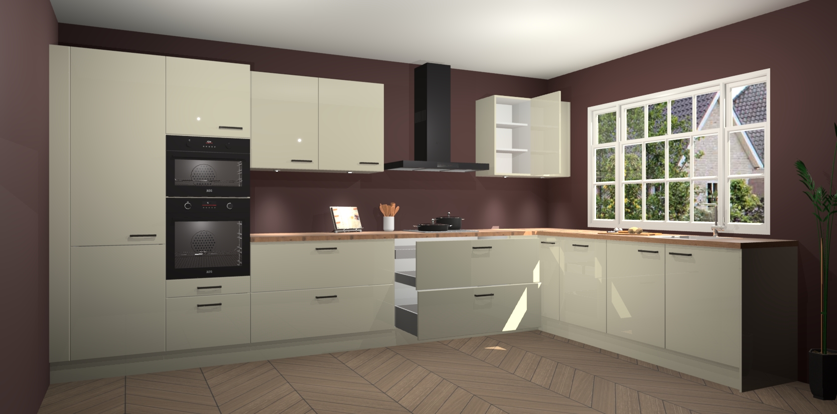 Kom dichtbij de perfecte keuken van uw dromen met de magnolia hoogglans keuken Graz. Met een prachtige houtlook en eigentijds ontwerp, straalt deze keuken warmte en sfeer uit. Of u nu liefhebber bent van traditionele of moderne stijlen, er is genoeg ruimte om aan al uw behoeften te voldoen.