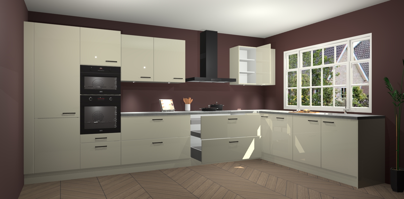 Kom dichtbij de perfecte keuken van uw dromen met de magnolia hoogglans keuken Graz. Met een prachtige houtlook en eigentijds ontwerp, straalt deze keuken warmte en sfeer uit. Of u nu liefhebber bent van traditionele of moderne stijlen, er is genoeg ruimte om aan al uw behoeften te voldoen.
