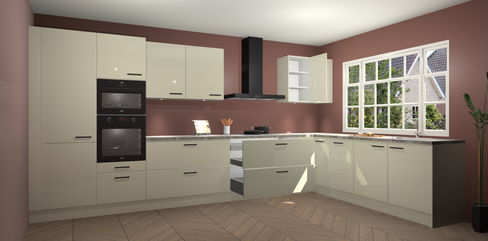 Kom dichtbij de perfecte keuken van uw dromen met de magnolia hoogglans keuken Graz. Met een prachtige houtlook en eigentijds ontwerp, straalt deze keuken warmte en sfeer uit. Of u nu liefhebber bent van traditionele of moderne stijlen, er is genoeg ruimte om aan al uw behoeften te voldoen.
