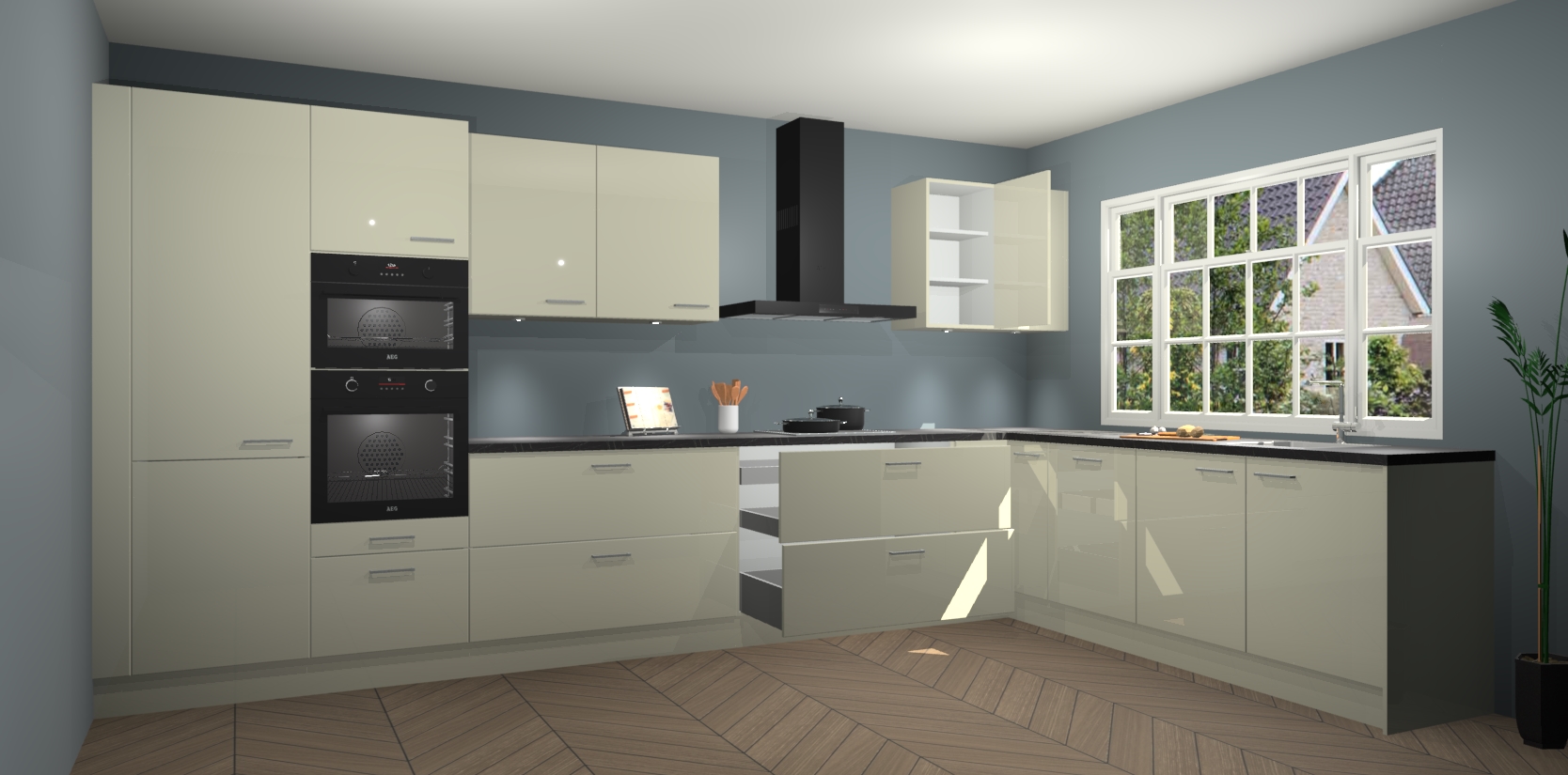 Kom dichtbij de perfecte keuken van uw dromen met de magnolia hoogglans keuken Graz. Met een prachtige houtlook en eigentijds ontwerp, straalt deze keuken warmte en sfeer uit. Of u nu liefhebber bent van traditionele of moderne stijlen, er is genoeg ruimte om aan al uw behoeften te voldoen.