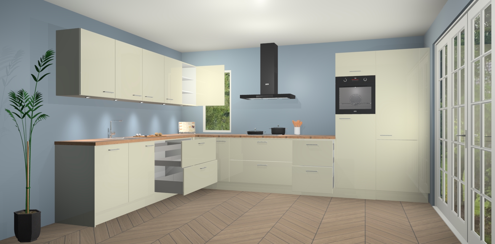 Heeft u nog apparatuur nodig? Geen probleem: de magnolia hoogglans keuken Harare bevat vijf ingebouwde apparaten - een oven, inductiekookplaat, afzuigkap, vaatwasser en koelkast - die gemakkelijk kunnen worden bijgewerkt naar AEG na bestelling. En als dat nog niet genoeg is; onze kasten worden pre-geassembleerd geleverd en zijn verkrijgbaar tegen een vastgeroeste lage prijs! U hoeft nooit meer te zoeken naar goede kwaliteit en service want onze producten hebben echt Duitse kwaliteit.