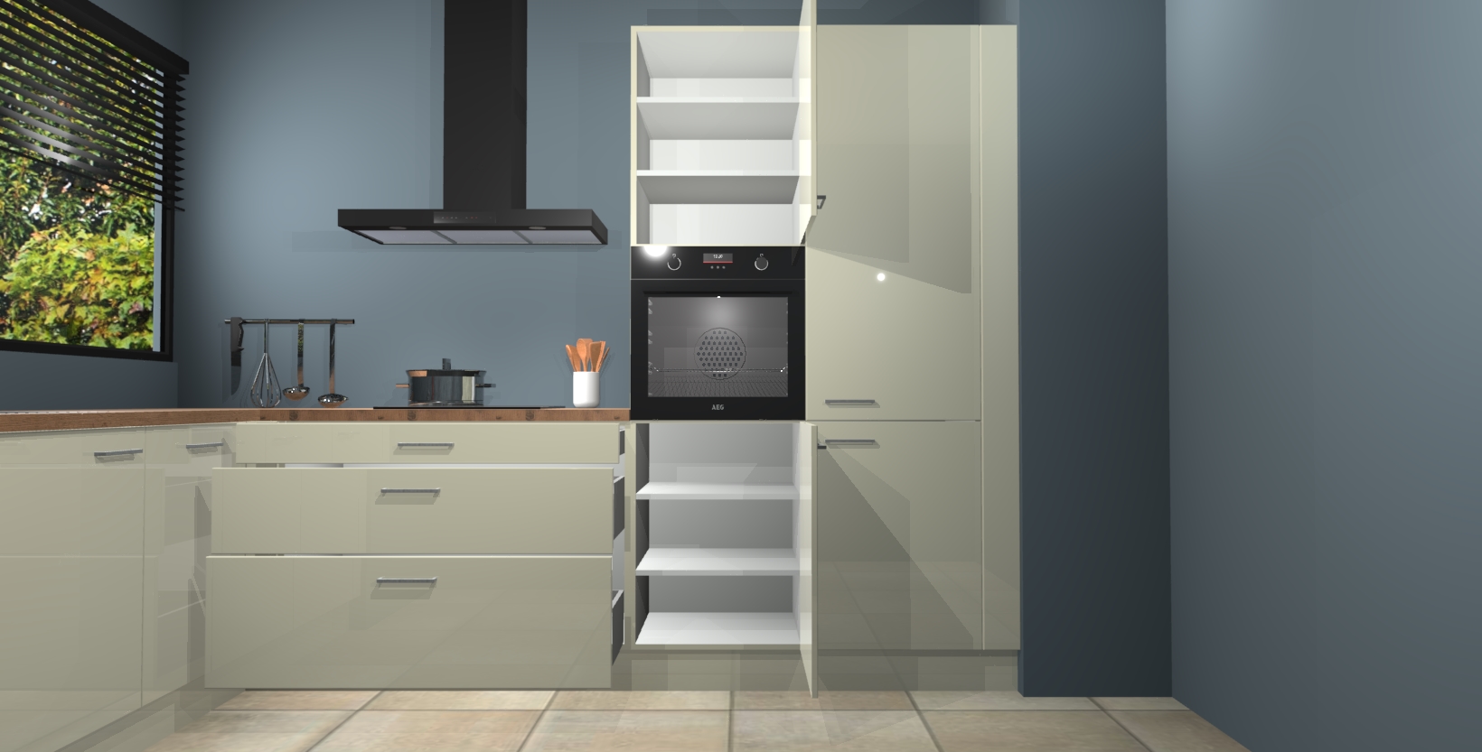 Met een modern, tijdloos design en ruime opslagruimte, zult u zich in no-time thuis voelen in uw nieuwe keuken. Uw leven wordt eenvoudiger met de soft-close deuren die voor het ultieme stille comfort zorgen - geen geluid dat u stoort terwijl u kookt. Ook is de keuken voorzien van 5 ingebouwde apparaten: een oven, inductie kookplaat, afzuigkap, vaatwasser en koelkast. Deze kunnen gemakkelijk na bestelling worden bijgewerkt naar AEG - waardoor uw luxe ervaring compleet is.