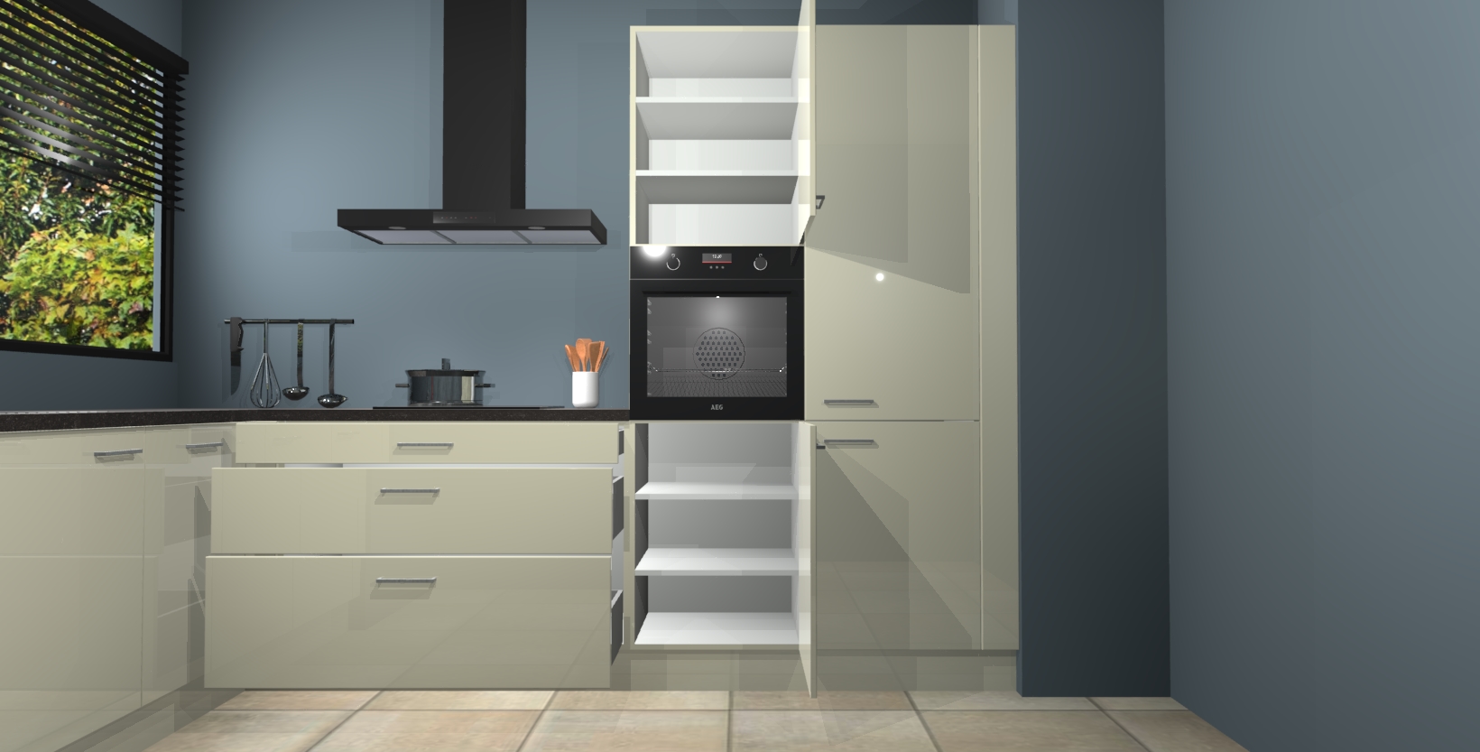 Met een modern, tijdloos design en ruime opslagruimte, zult u zich in no-time thuis voelen in uw nieuwe keuken. Uw leven wordt eenvoudiger met de soft-close deuren die voor het ultieme stille comfort zorgen - geen geluid dat u stoort terwijl u kookt. Ook is de keuken voorzien van 5 ingebouwde apparaten: een oven, inductie kookplaat, afzuigkap, vaatwasser en koelkast. Deze kunnen gemakkelijk na bestelling worden bijgewerkt naar AEG - waardoor uw luxe ervaring compleet is.