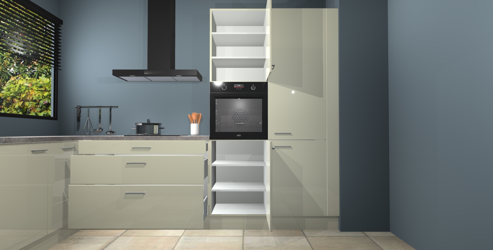 Met een modern, tijdloos design en ruime opslagruimte, zult u zich in no-time thuis voelen in uw nieuwe keuken. Uw leven wordt eenvoudiger met de soft-close deuren die voor het ultieme stille comfort zorgen - geen geluid dat u stoort terwijl u kookt. Ook is de keuken voorzien van 5 ingebouwde apparaten: een oven, inductie kookplaat, afzuigkap, vaatwasser en koelkast. Deze kunnen gemakkelijk na bestelling worden bijgewerkt naar AEG - waardoor uw luxe ervaring compleet is.