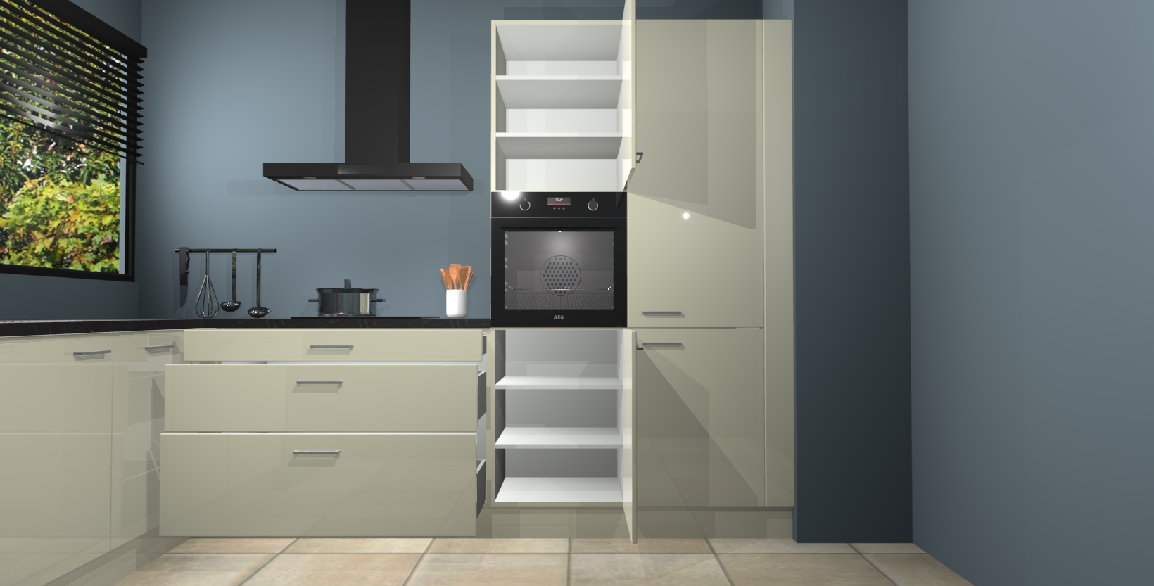 Met een modern, tijdloos design en ruime opslagruimte, zult u zich in no-time thuis voelen in uw nieuwe keuken. Uw leven wordt eenvoudiger met de soft-close deuren die voor het ultieme stille comfort zorgen - geen geluid dat u stoort terwijl u kookt. Ook is de keuken voorzien van 5 ingebouwde apparaten: een oven, inductie kookplaat, afzuigkap, vaatwasser en koelkast. Deze kunnen gemakkelijk na bestelling worden bijgewerkt naar AEG - waardoor uw luxe ervaring compleet is.