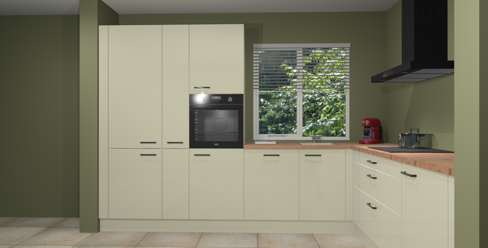 Met een modern, tijdloos design en ruime opslagruimte, zult u zich in no-time thuis voelen in uw nieuwe keuken. Uw leven wordt eenvoudiger met de soft-close deuren die voor het ultieme stille comfort zorgen - geen geluid dat u stoort terwijl u kookt. Ook is de keuken voorzien van 5 ingebouwde apparaten: een oven, inductie kookplaat, afzuigkap, vaatwasser en koelkast. Deze kunnen gemakkelijk na bestelling worden bijgewerkt naar AEG - waardoor uw luxe ervaring compleet is.
