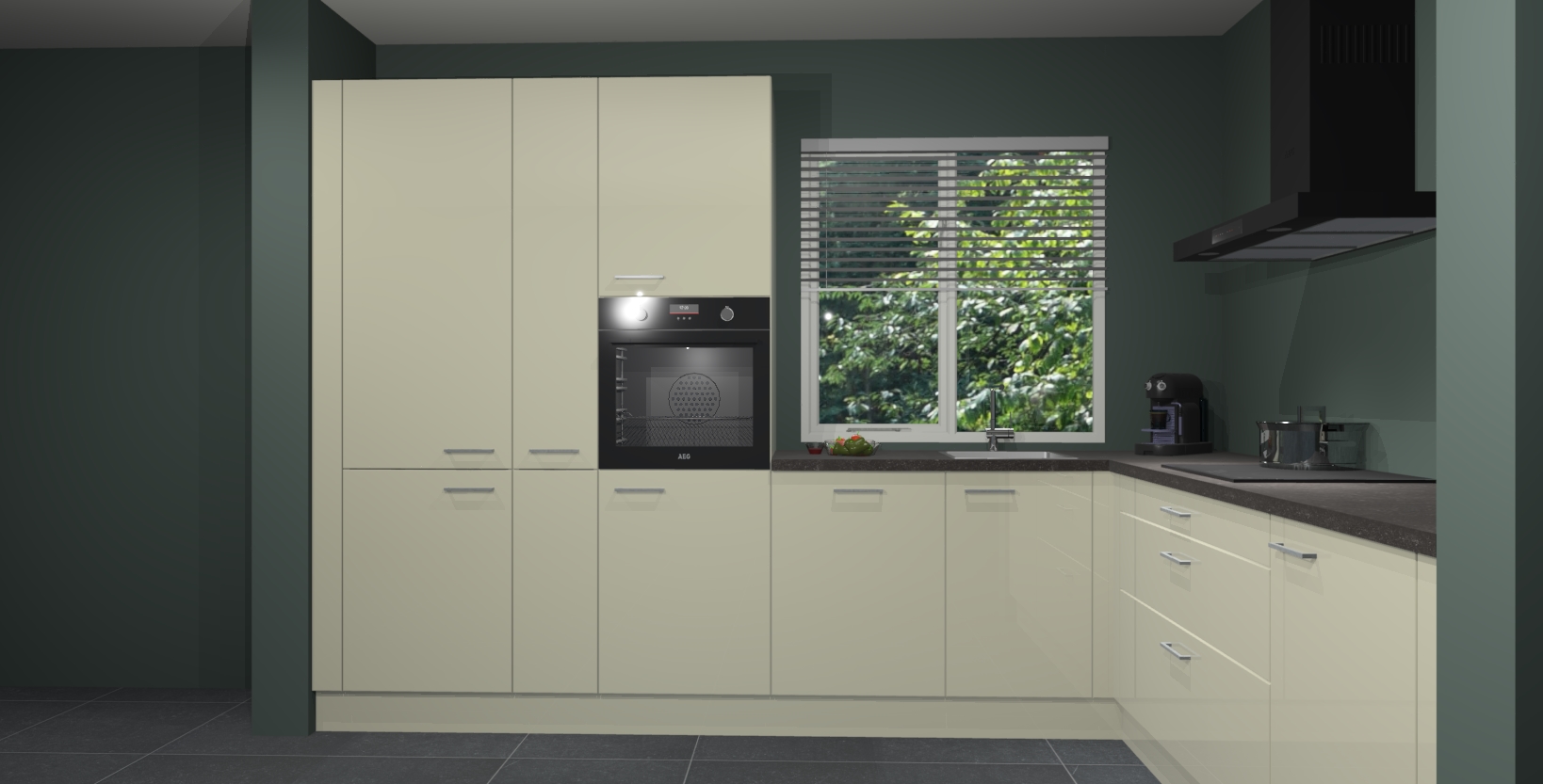 Met een modern, tijdloos design en ruime opslagruimte, zult u zich in no-time thuis voelen in uw nieuwe keuken. Uw leven wordt eenvoudiger met de soft-close deuren die voor het ultieme stille comfort zorgen - geen geluid dat u stoort terwijl u kookt. Ook is de keuken voorzien van 5 ingebouwde apparaten: een oven, inductie kookplaat, afzuigkap, vaatwasser en koelkast. Deze kunnen gemakkelijk na bestelling worden bijgewerkt naar AEG - waardoor uw luxe ervaring compleet is.
