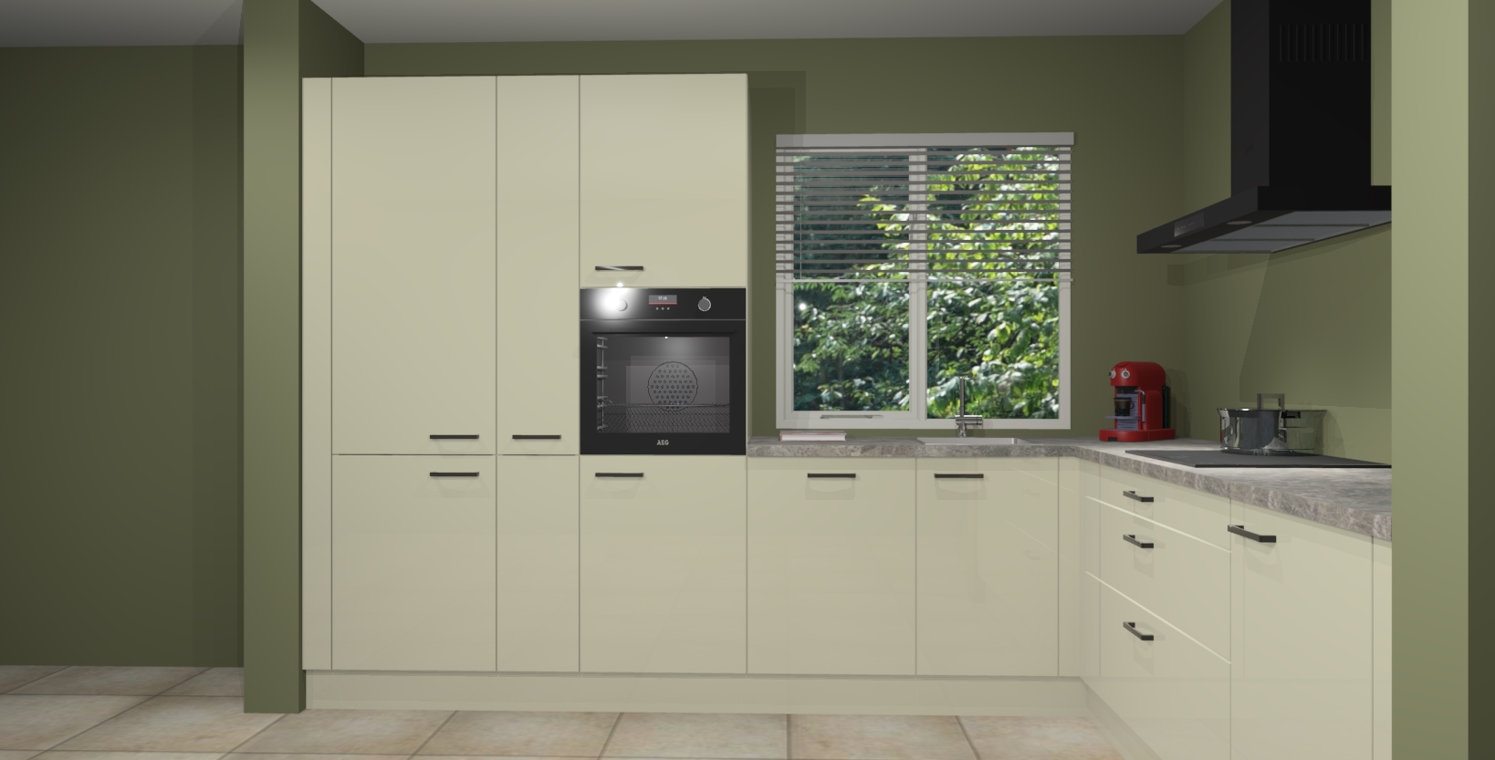 Met een modern, tijdloos design en ruime opslagruimte, zult u zich in no-time thuis voelen in uw nieuwe keuken. Uw leven wordt eenvoudiger met de soft-close deuren die voor het ultieme stille comfort zorgen - geen geluid dat u stoort terwijl u kookt. Ook is de keuken voorzien van 5 ingebouwde apparaten: een oven, inductie kookplaat, afzuigkap, vaatwasser en koelkast. Deze kunnen gemakkelijk na bestelling worden bijgewerkt naar AEG - waardoor uw luxe ervaring compleet is.