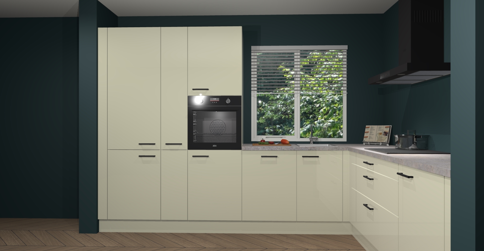 Met een modern, tijdloos design en ruime opslagruimte, zult u zich in no-time thuis voelen in uw nieuwe keuken. Uw leven wordt eenvoudiger met de soft-close deuren die voor het ultieme stille comfort zorgen - geen geluid dat u stoort terwijl u kookt. Ook is de keuken voorzien van 5 ingebouwde apparaten: een oven, inductie kookplaat, afzuigkap, vaatwasser en koelkast. Deze kunnen gemakkelijk na bestelling worden bijgewerkt naar AEG - waardoor uw luxe ervaring compleet is.