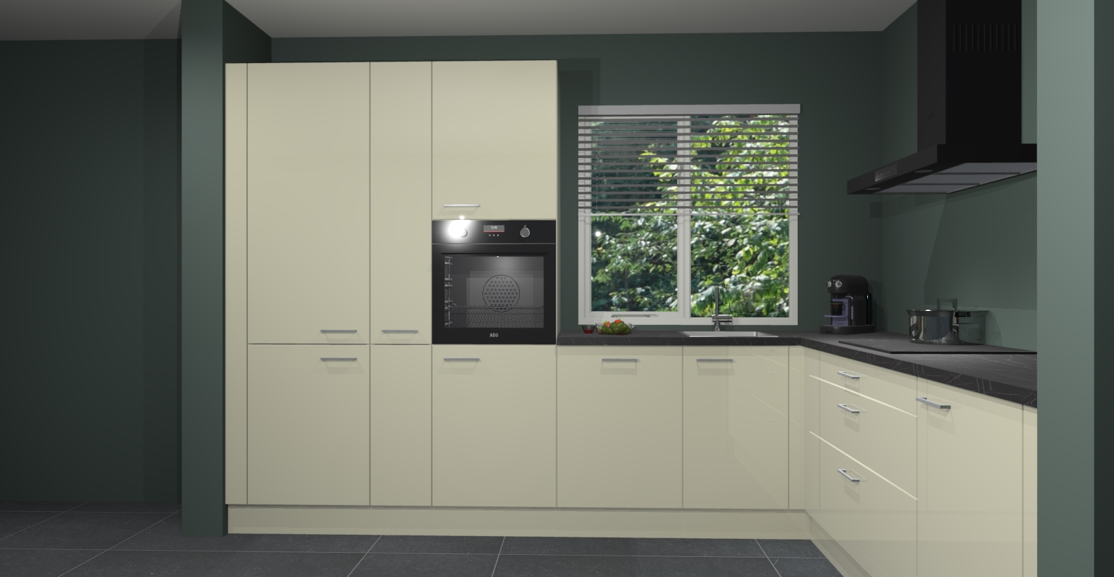 Met een modern, tijdloos design en ruime opslagruimte, zult u zich in no-time thuis voelen in uw nieuwe keuken. Uw leven wordt eenvoudiger met de soft-close deuren die voor het ultieme stille comfort zorgen - geen geluid dat u stoort terwijl u kookt. Ook is de keuken voorzien van 5 ingebouwde apparaten: een oven, inductie kookplaat, afzuigkap, vaatwasser en koelkast. Deze kunnen gemakkelijk na bestelling worden bijgewerkt naar AEG - waardoor uw luxe ervaring compleet is.