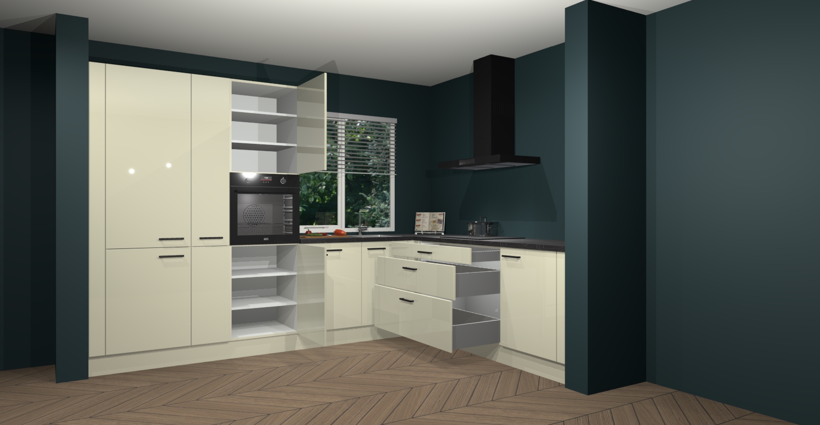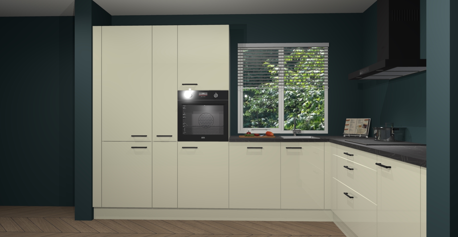 Met een modern, tijdloos design en ruime opslagruimte, zult u zich in no-time thuis voelen in uw nieuwe keuken. Uw leven wordt eenvoudiger met de soft-close deuren die voor het ultieme stille comfort zorgen - geen geluid dat u stoort terwijl u kookt. Ook is de keuken voorzien van 5 ingebouwde apparaten: een oven, inductie kookplaat, afzuigkap, vaatwasser en koelkast. Deze kunnen gemakkelijk na bestelling worden bijgewerkt naar AEG - waardoor uw luxe ervaring compleet is.