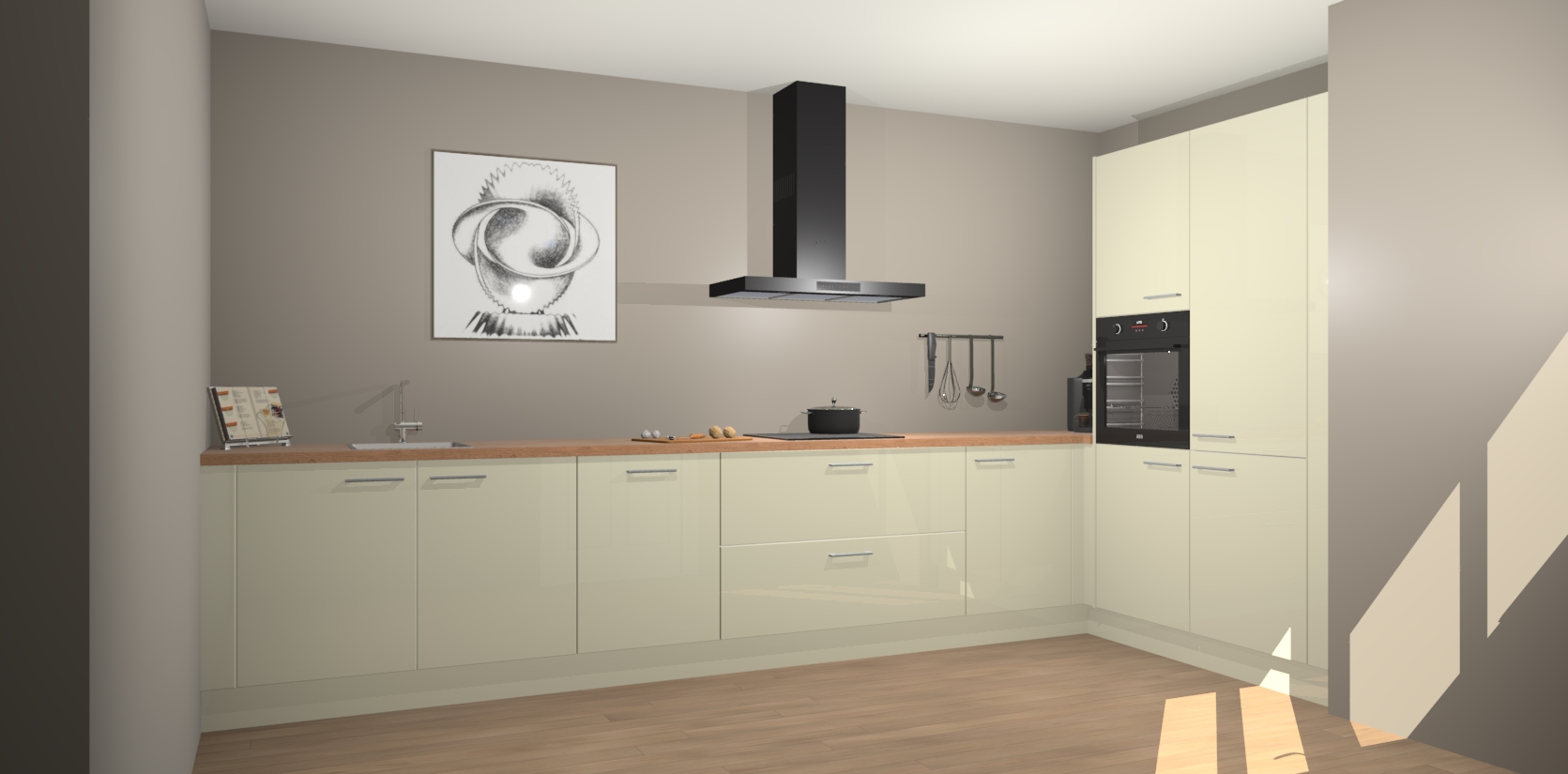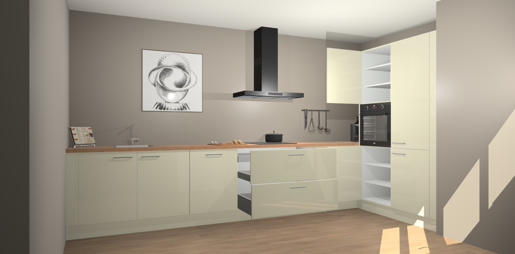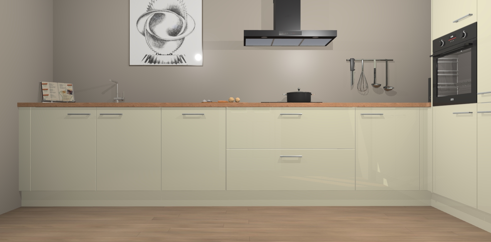 Welkom bij de Magnolia hoogglans keuken Khao Lak. Deze prachtige keuken zal de komende jaren het middelpunt van de belangstelling in uw huis zijn. Uitgerust met vijf inbouwapparaten komt u nooit kookgereedschap tekort. Bovendien geeft de warme houtlook elke ruimte een uitnodigende en tijdloze uitstraling.