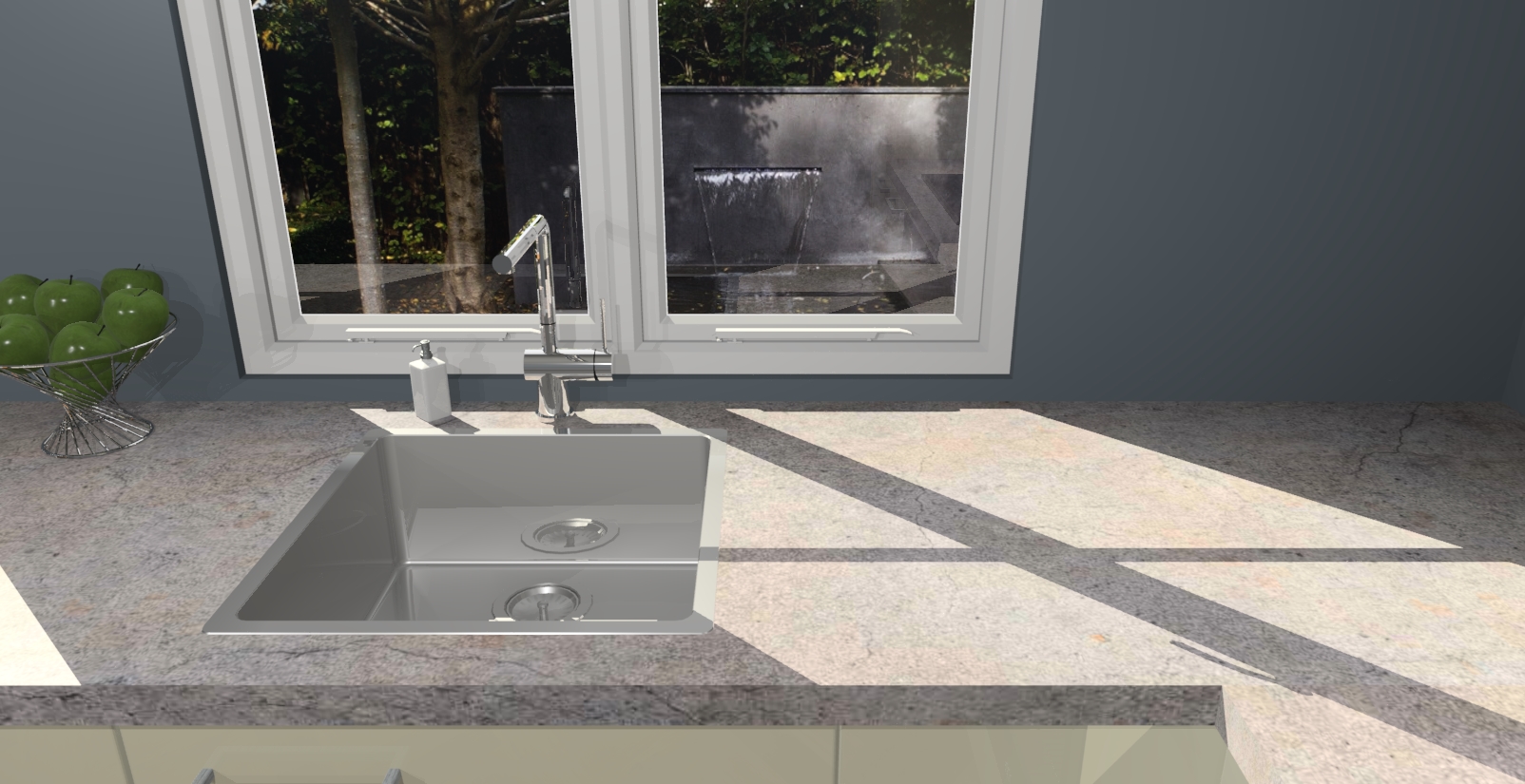 • De spoelbak is nog niet in gevreesd. Dit dient tijdens het werk gedaan te worden