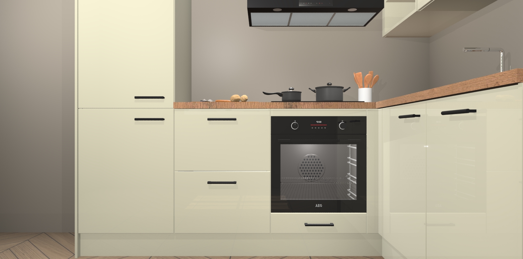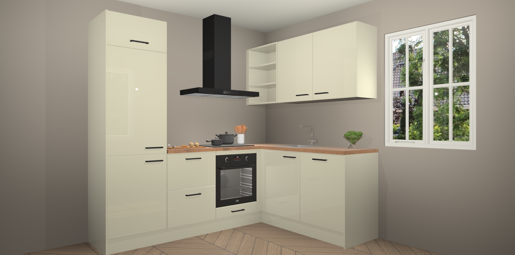 Dit model biedt u voldoende opbergruimte en vijf ingebouwde apparaten: een oven, inductiekookplaat, afzuigkap, vaatwasser en koelkast. Deze apparaten kunnen gemakkelijk worden geüpgrade naar AEG nadat u besteld heeft. De verschillende laden en kastjes bevatten softclose-deuren waardoor ze gezellig dichtvallen met een geruststellend helemaal geruisloos geluid. En dat is nog niet alles! We garanderen ook dat de prijs altijd laag blijft - dus haal nu uw Magnolia hoogglans keuken Krakau terwijl het kan.