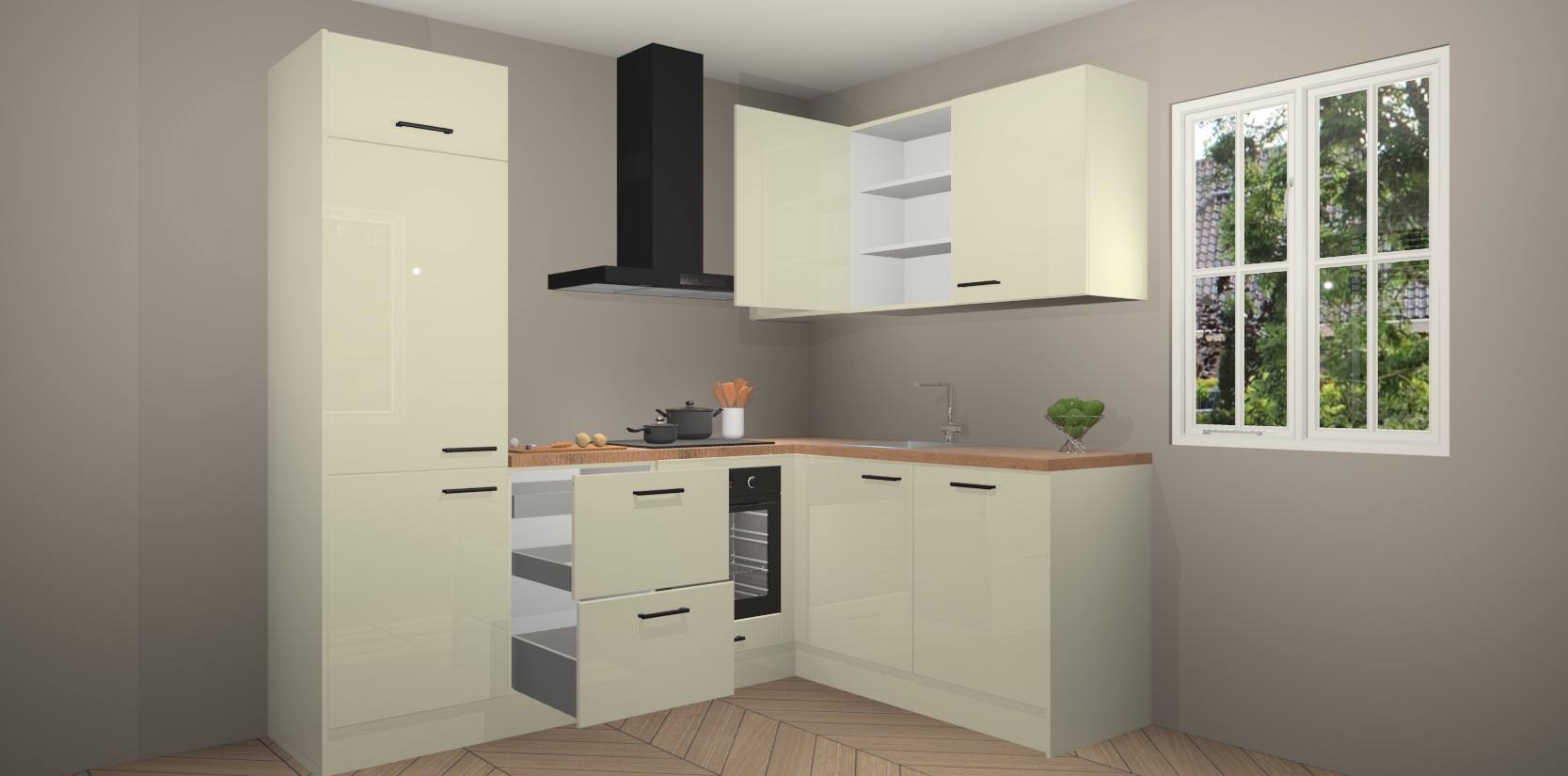Inclusief plinten, stelpoten en werkblad