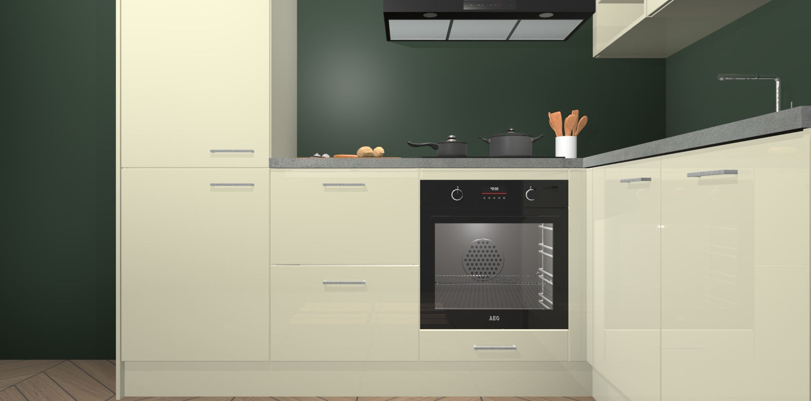 Dit model biedt u voldoende opbergruimte en vijf ingebouwde apparaten: een oven, inductiekookplaat, afzuigkap, vaatwasser en koelkast. Deze apparaten kunnen gemakkelijk worden geüpgrade naar AEG nadat u besteld heeft. De verschillende laden en kastjes bevatten softclose-deuren waardoor ze gezellig dichtvallen met een geruststellend helemaal geruisloos geluid. En dat is nog niet alles! We garanderen ook dat de prijs altijd laag blijft - dus haal nu uw Magnolia hoogglans keuken Krakau terwijl het kan.