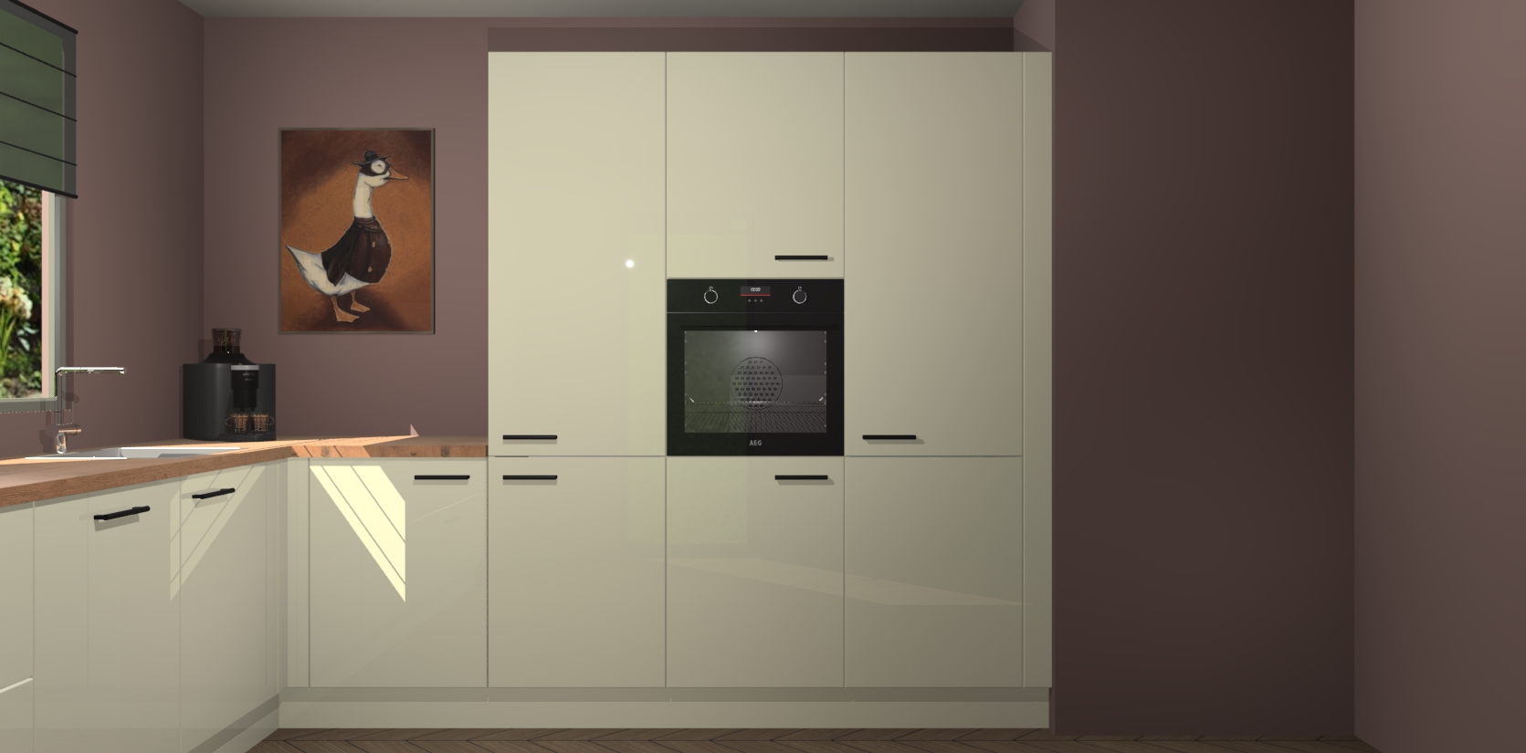 Welkom bij de Magnolia hooglans keuken Laos. Deze prachtige keuken zal de komende jaren het middelpunt van de belangstelling in uw huis zijn. Uitgerust met vijf inbouwapparaten komt u nooit kookgereedschap tekort. Bovendien geeft de warme houtlook elke ruimte een uitnodigende en tijdloze uitstraling.