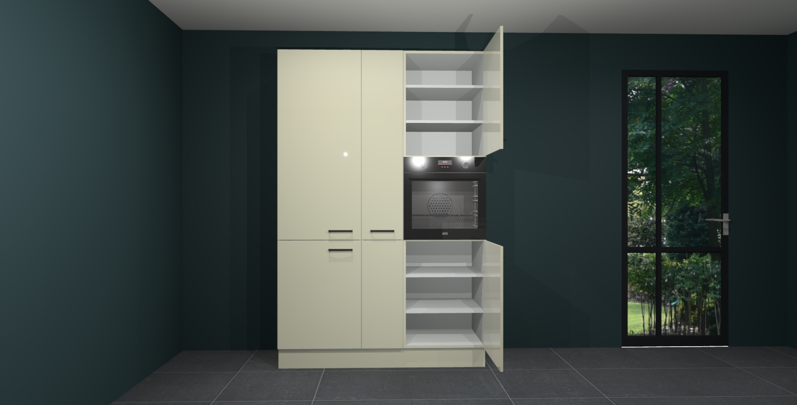 Met een modern, tijdloos design en ruime opslagruimte, zult u zich in no-time thuis voelen in uw nieuwe keuken. Uw leven wordt eenvoudiger met de soft-close deuren die voor het ultieme stille comfort zorgen - geen geluid dat u stoort terwijl u kookt. Ook is de keuken voorzien van 5 ingebouwde apparaten: een oven, inductie kookplaat, afzuigkap, vaatwasser en koelkast. Deze kunnen gemakkelijk na bestelling worden bijgewerkt naar AEG - waardoor uw luxe ervaring compleet is.
